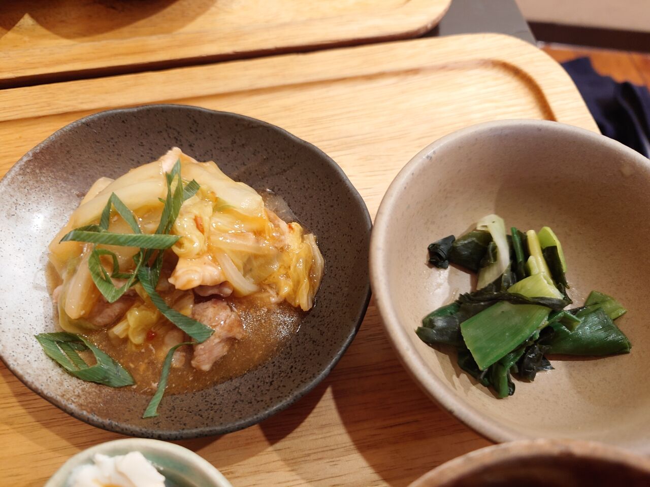 メインは左の白菜と豚肉の炒め煮。