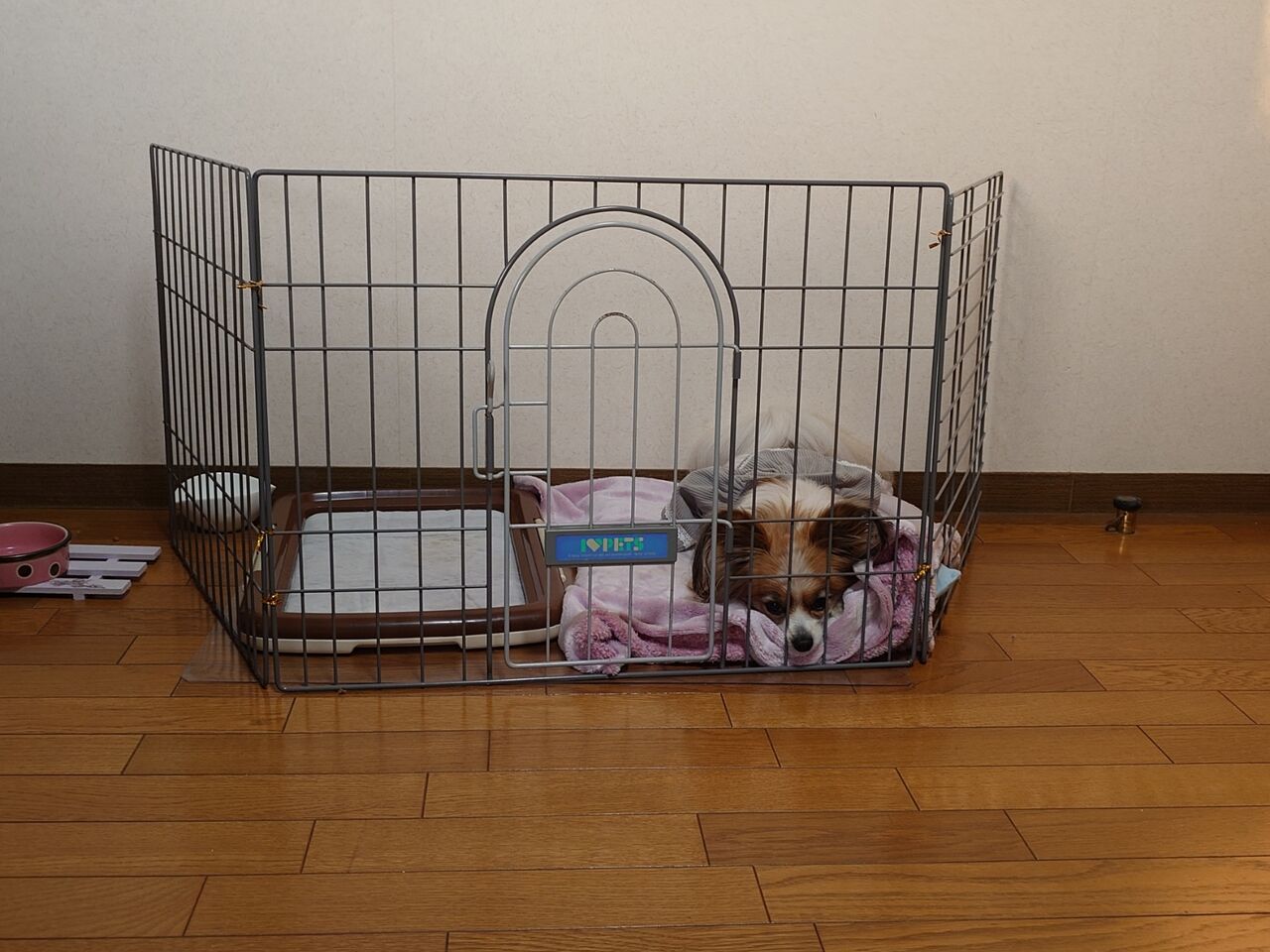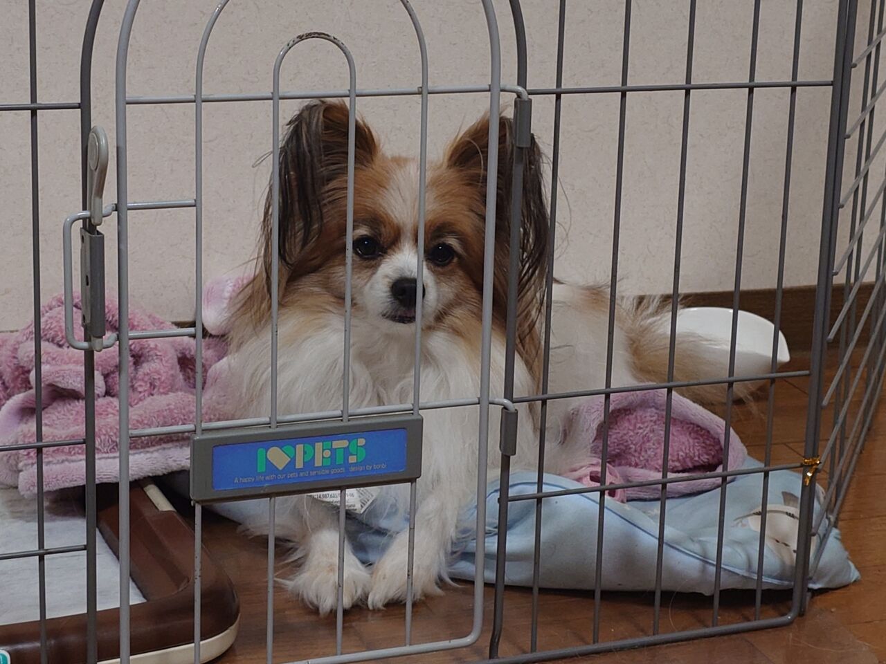 みんの様子がなんとなくおかしくて、また腰痛が出たに違いないとゲージに閉じ込めました。