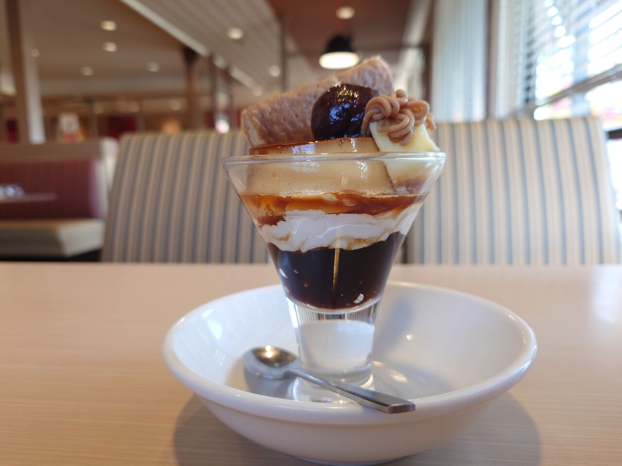 そして、ジョブチューンで満場一致の合格だった〈マロンと珈琲のモンブランサンデー〉¥549〈税込〉も注文してました。