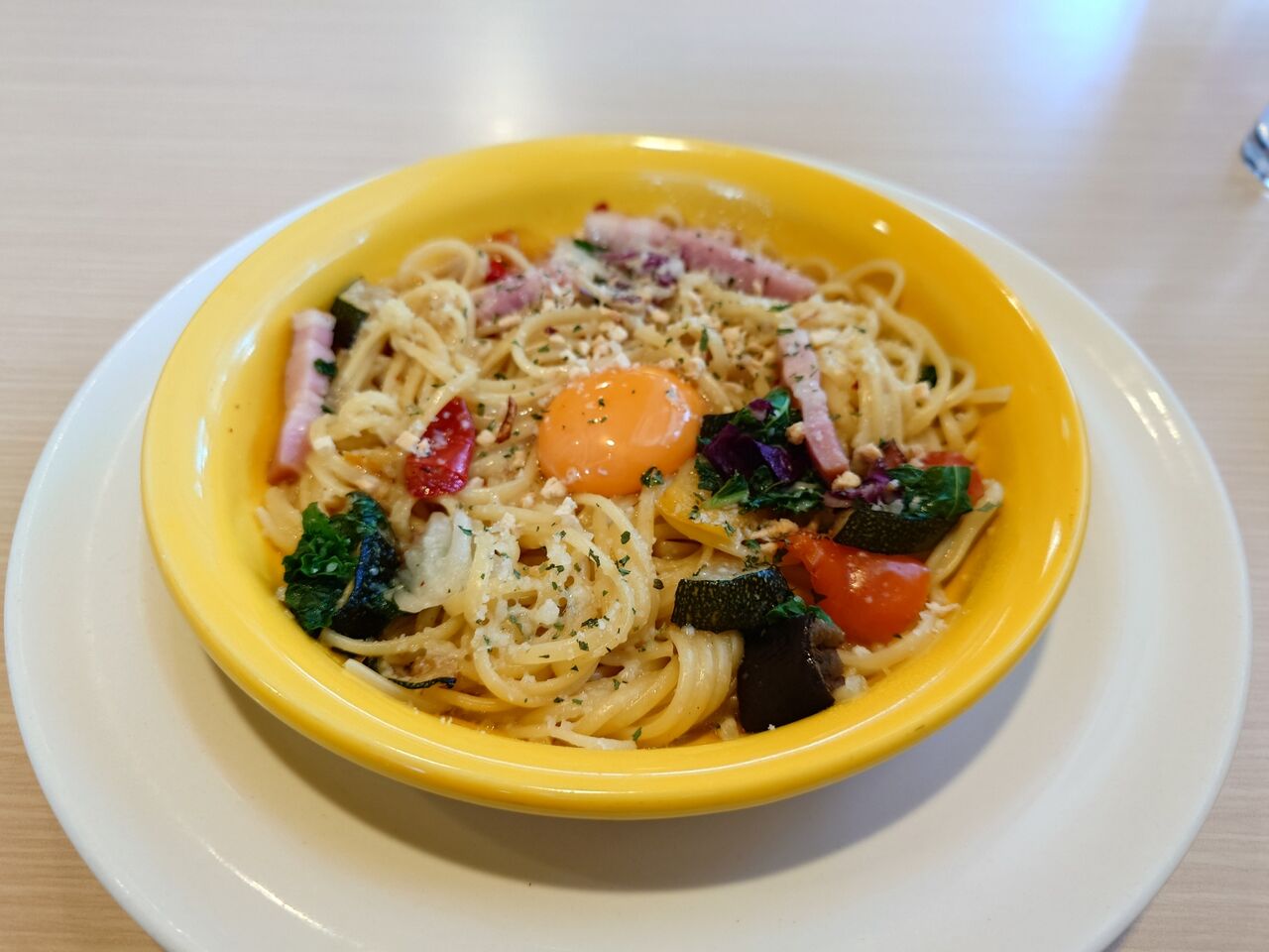 ケールとベーコンだけでなく、ナスやズッキーニ、パプリカなどもけっこう入っていました。