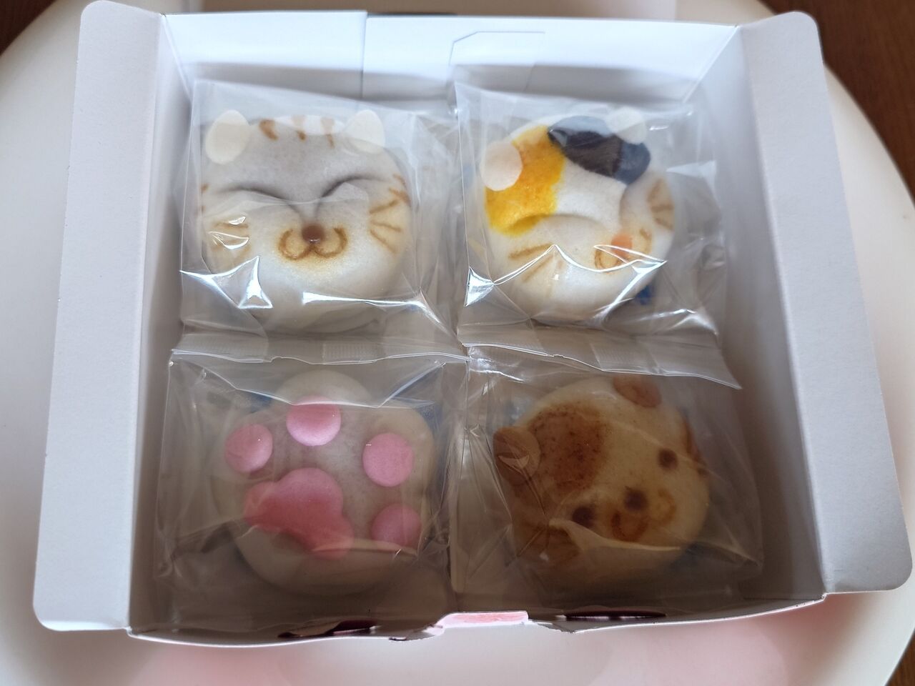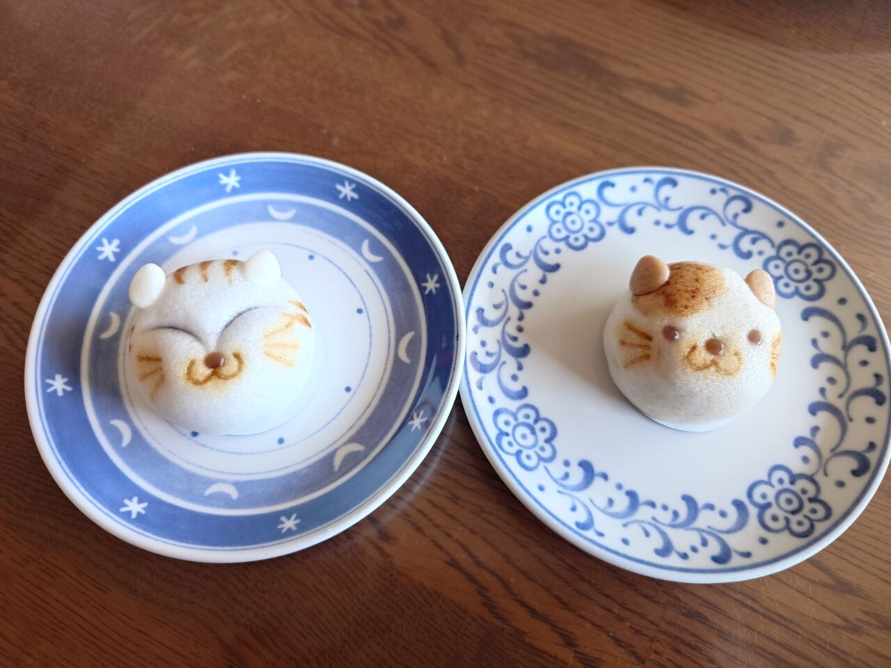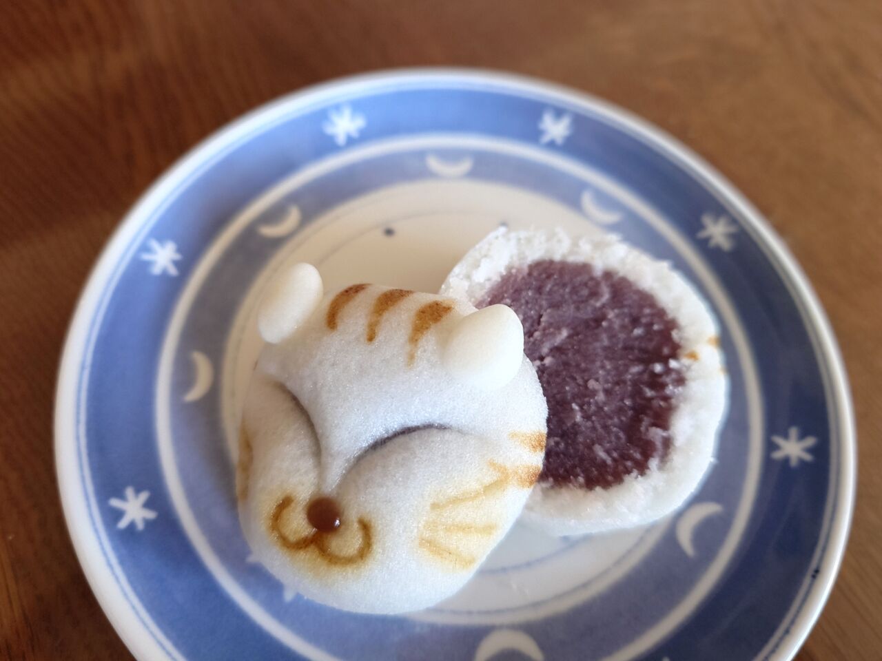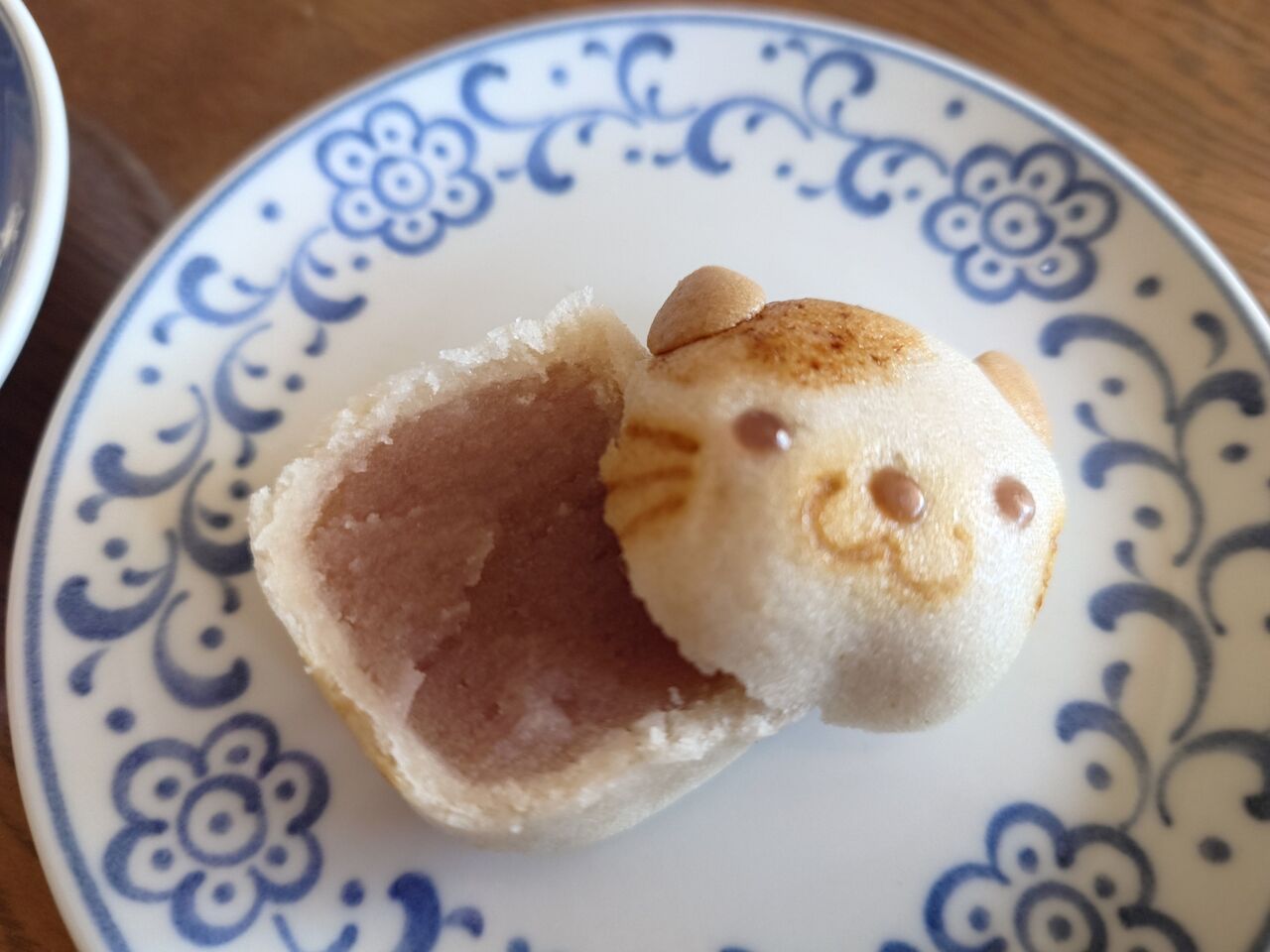 こちらの猫まんじゅうは、元々つり目の猫ちゃんだったけど、横からスライスしたので、顔が長くなってキツネ顔になってしまいました。
