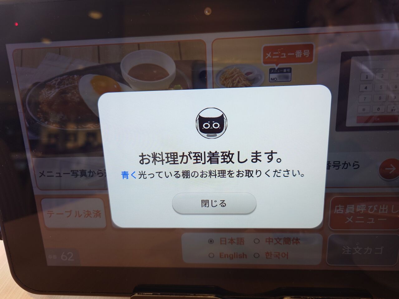 そういえば、注文はタブレット、提供はロボット、会計は機械だったので、スタッフさんは最初にお好きな席にどうぞと言われたときのみ。