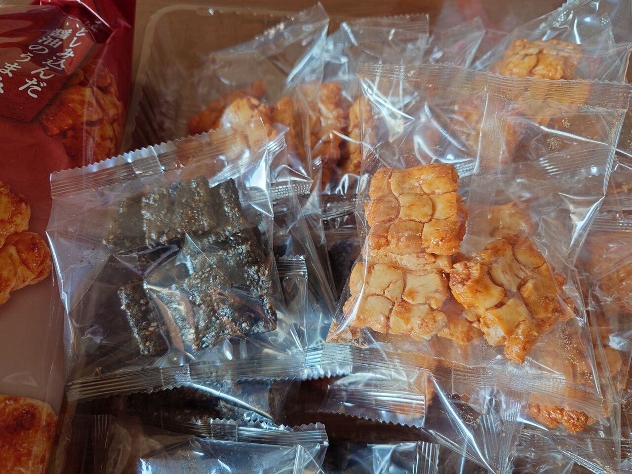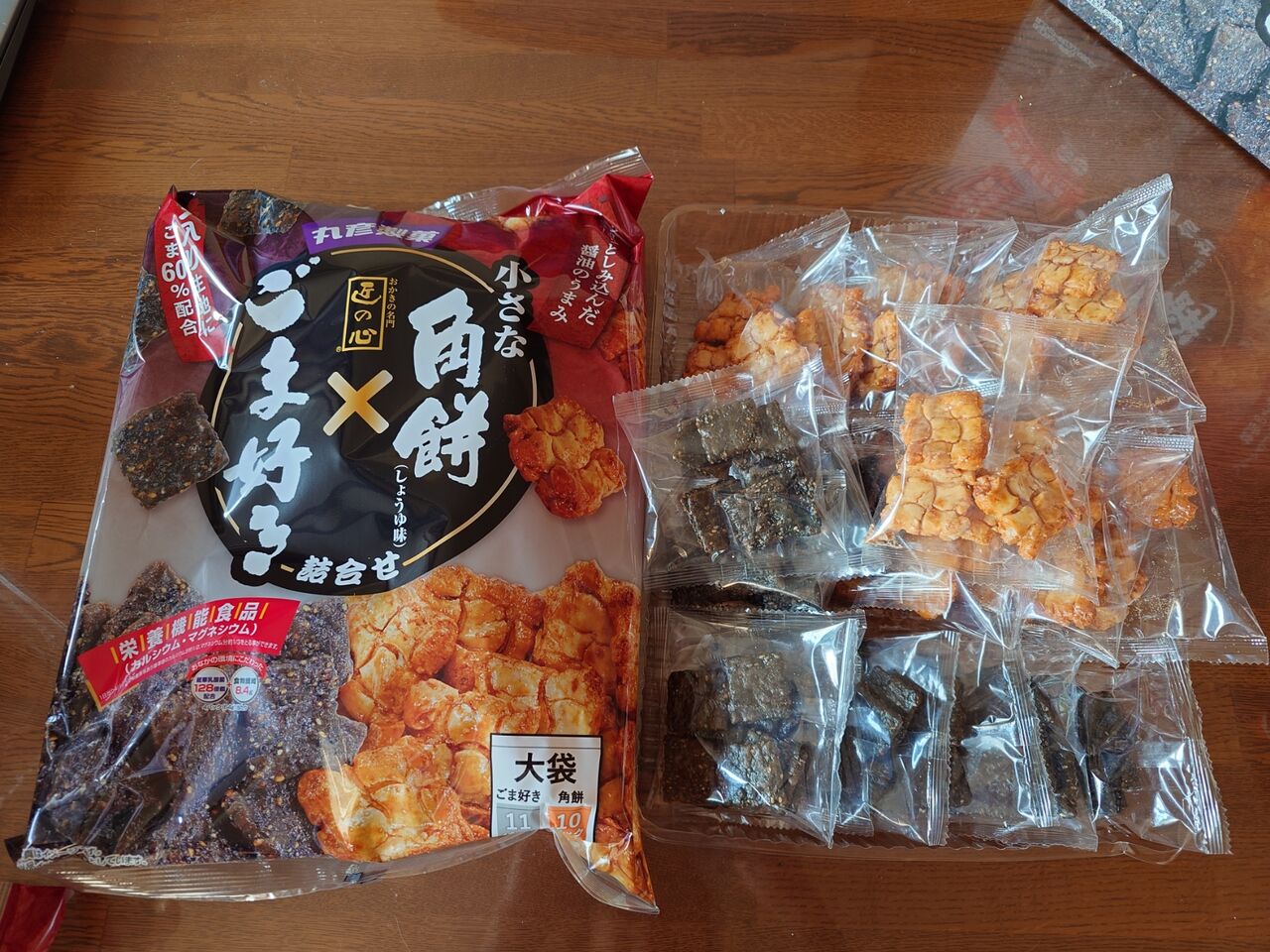 各餅10袋とごませんべい11袋入りの大袋が2つ入っています。
