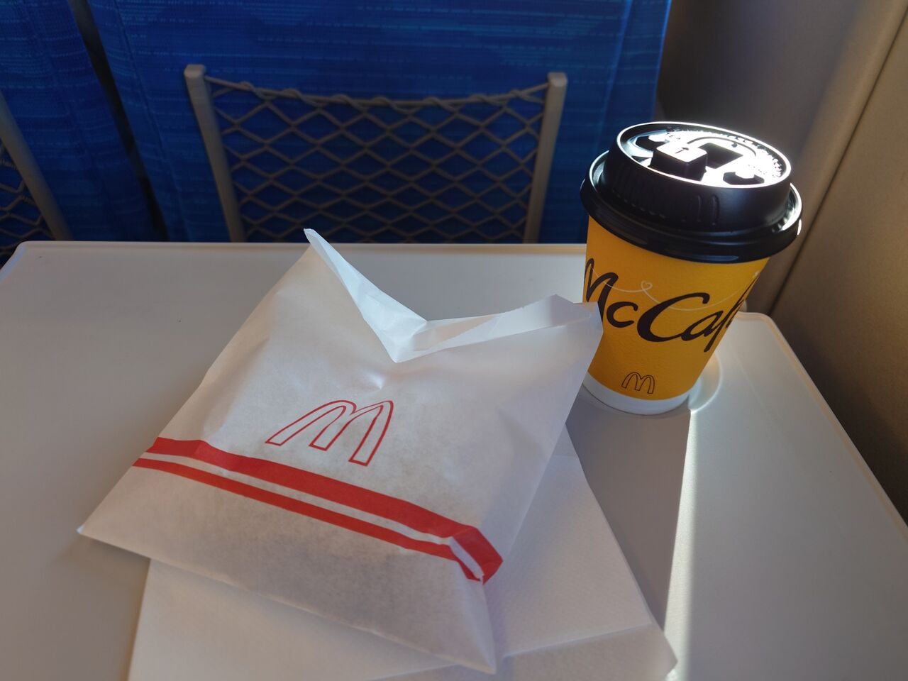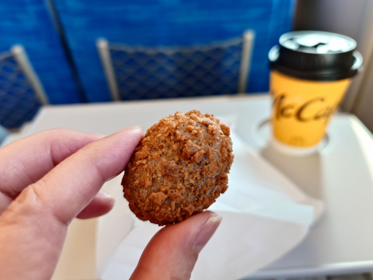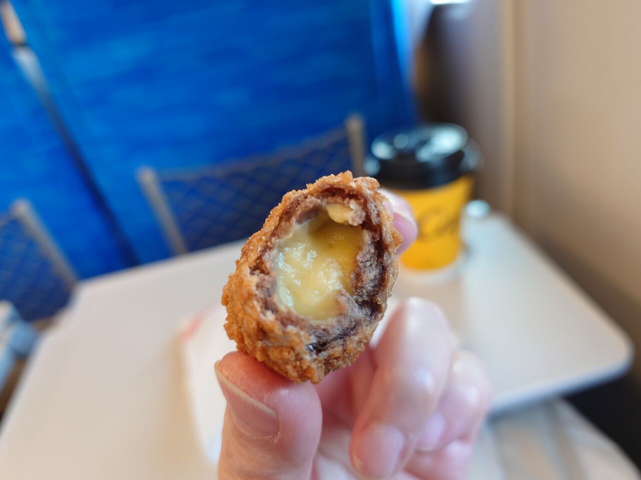 今日の新幹線カフェは、テレビのCMで流れて気になっていたマクドナルドのクレームブリュレホットドーナツです。