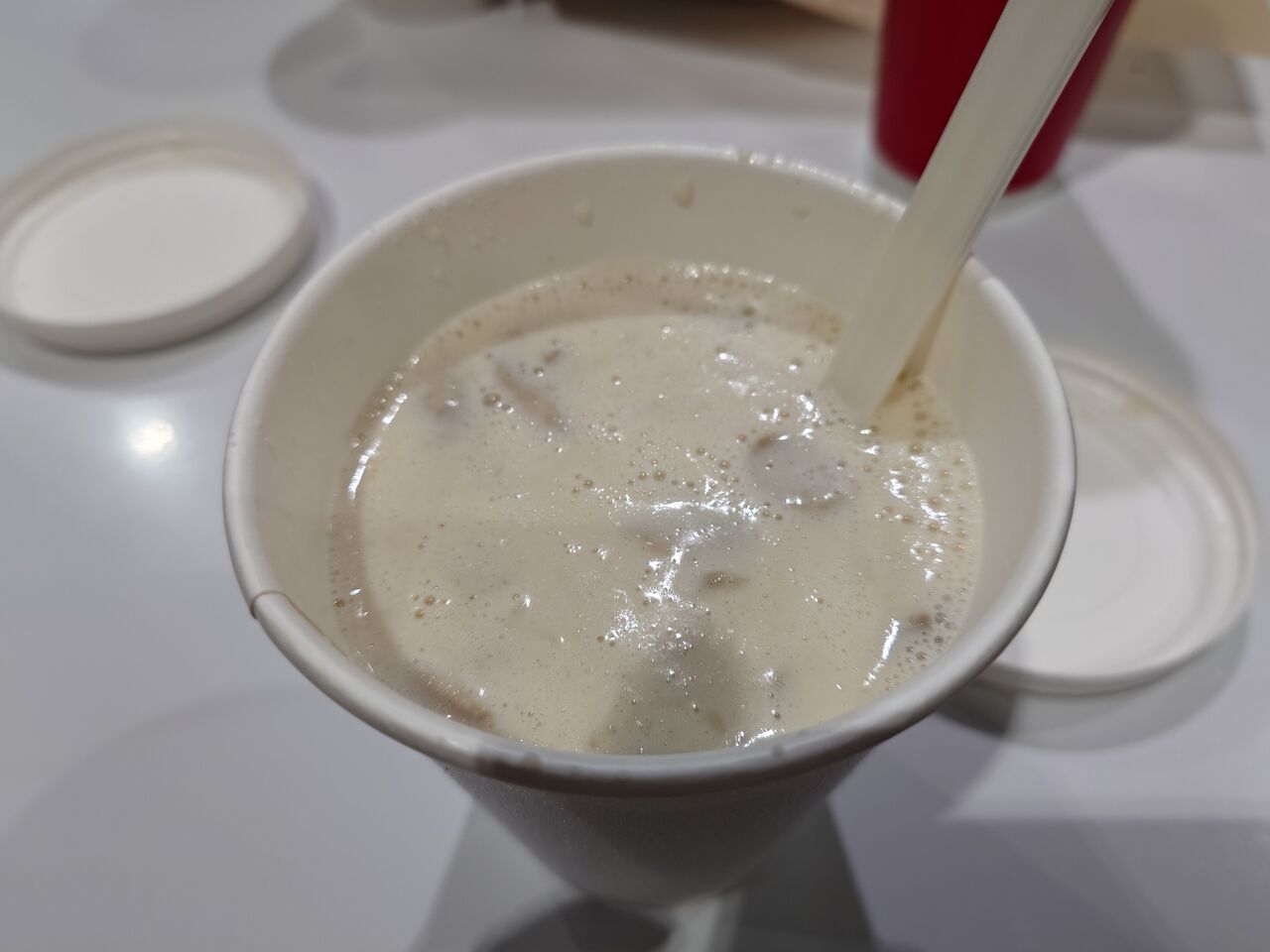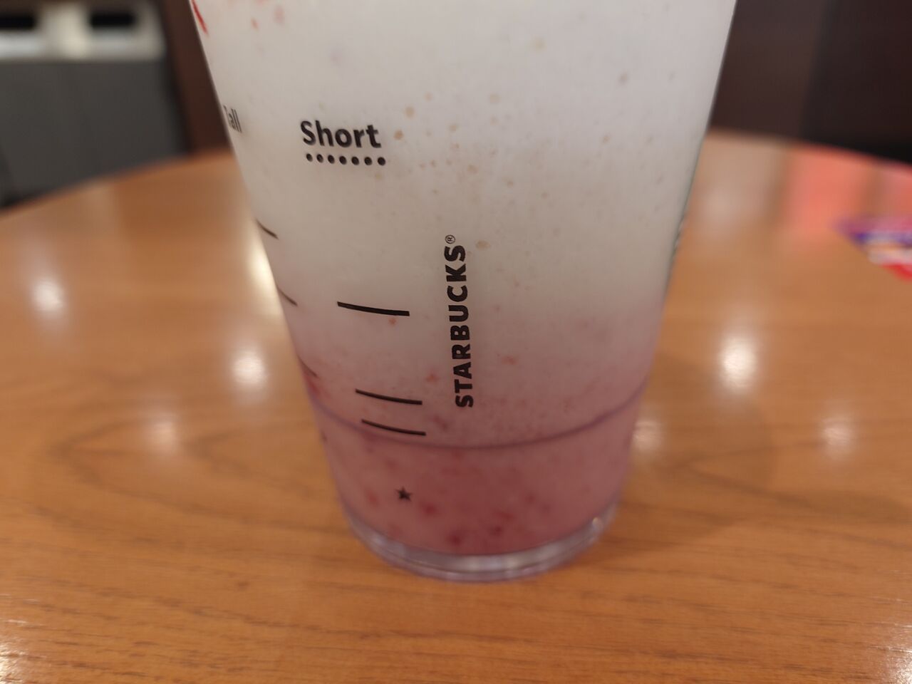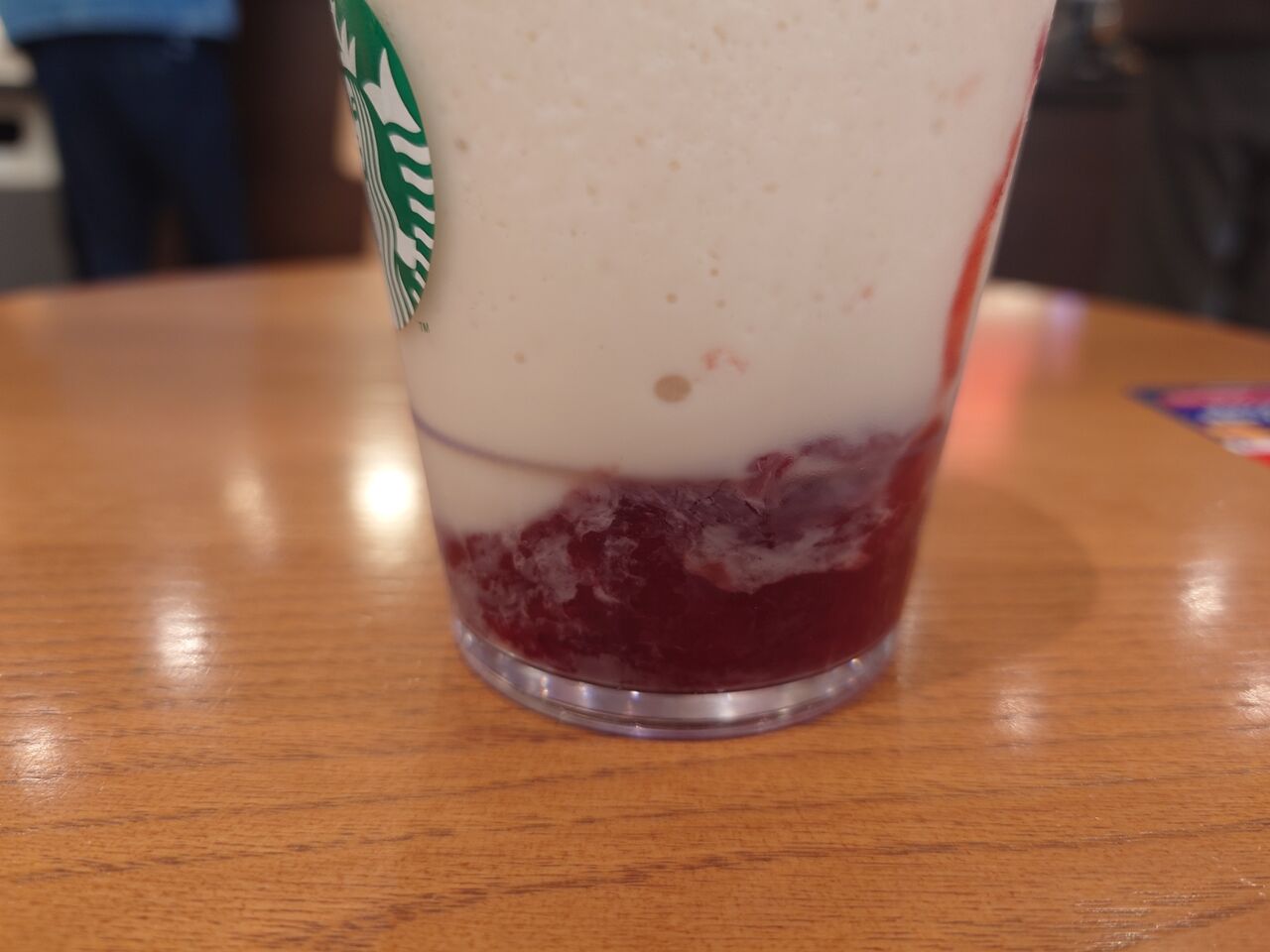 ぐるぐるっと混ぜてのんでいたら、トッピングされていたフリーズドライの苺がとっても酸っぱくてインパクトありでした。