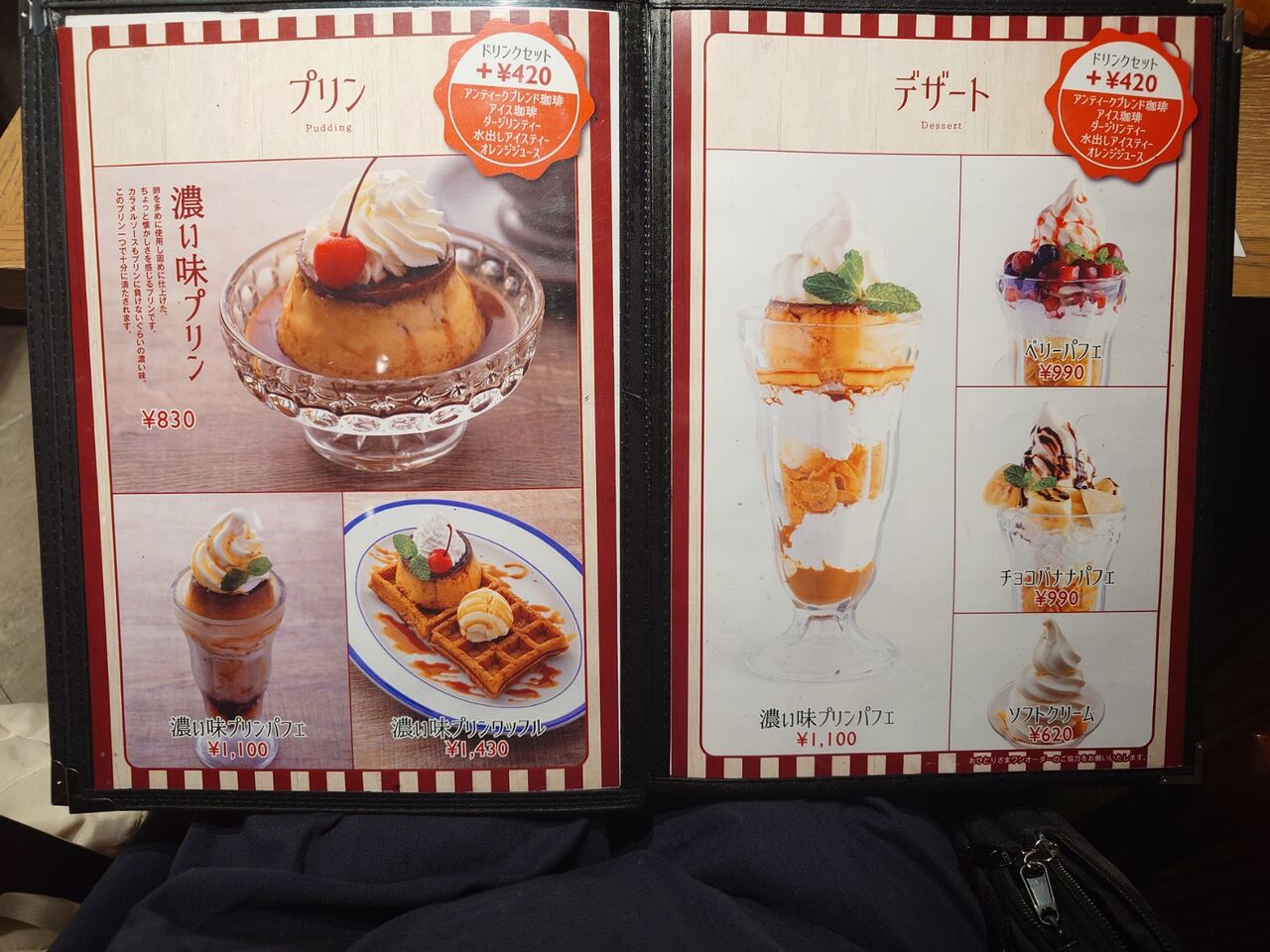 プリンの単体もありますし、今は期間限定のプリンアラモードもありましたが、やっぱりプリンパフェにしました。