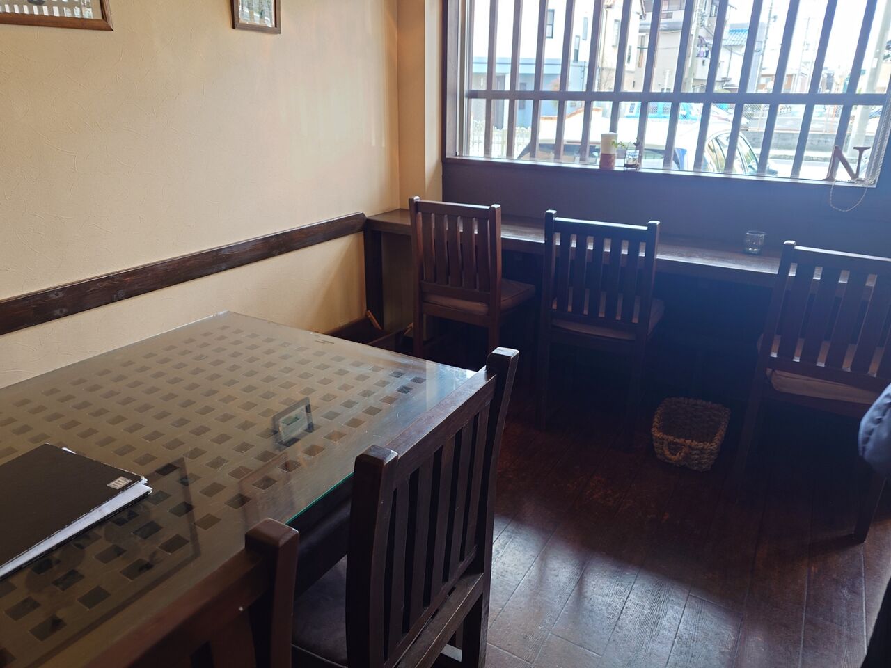 店内は、濃いブラウン系で、窓に格子もあるので、ちょっと大人な雰囲気です。