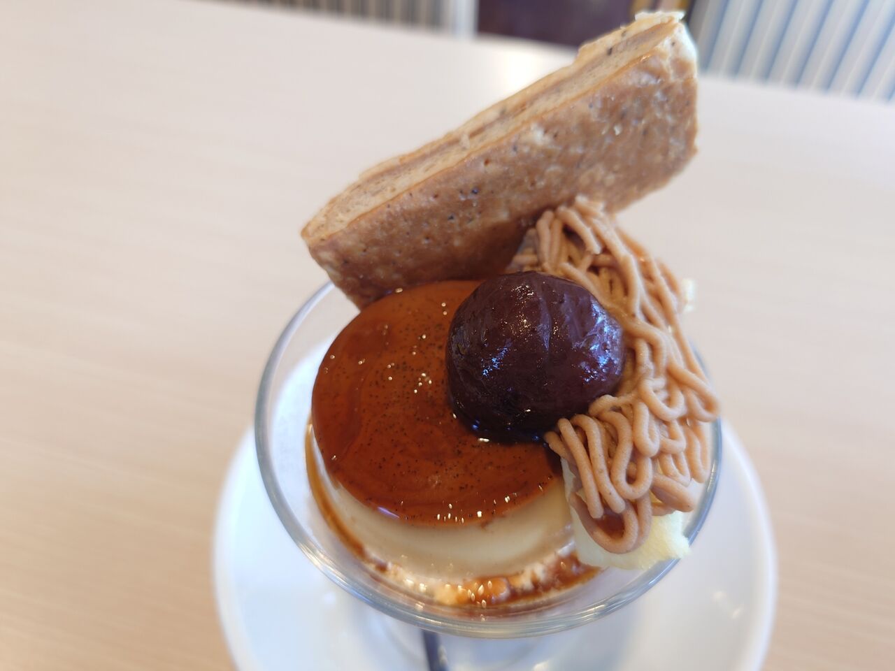 プリンもしっかりとしたおいしい卵プリンです。栗が一つのってるのも、しっとり台湾カステラがのってるのもうれしい〜。
