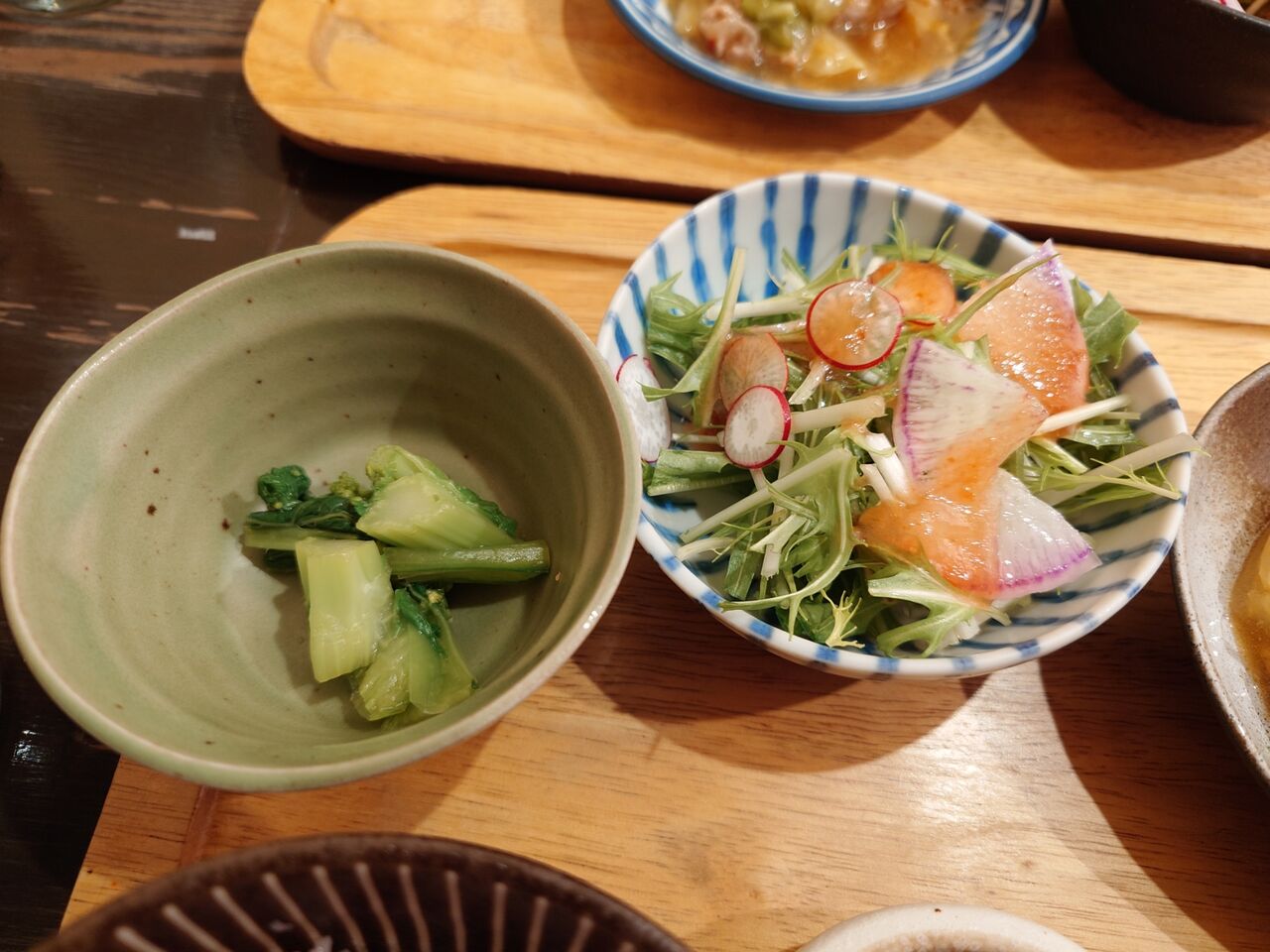 水菜のサラダは、梅干しのドレッシングでした。