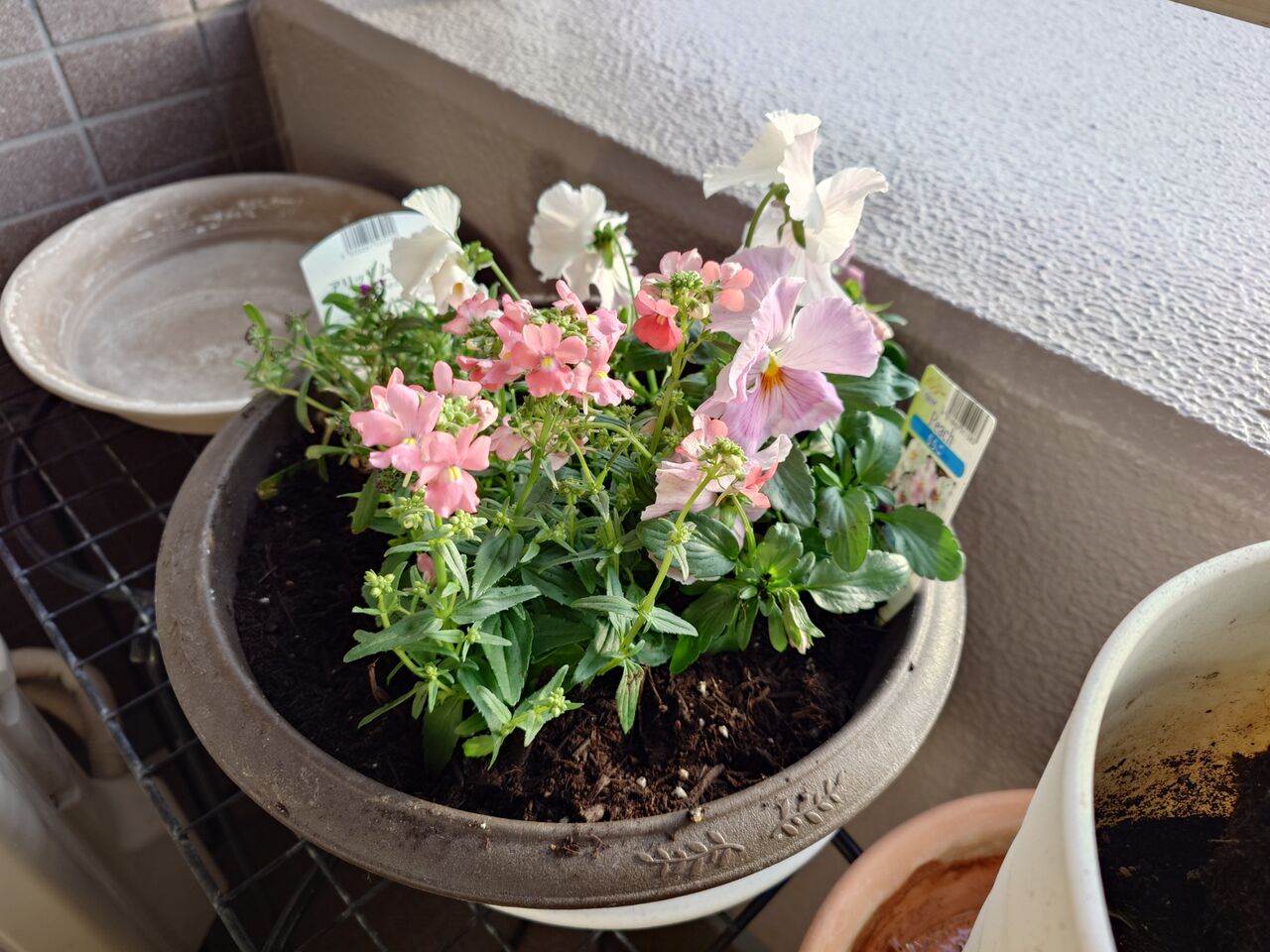 以前買ってきた花と一緒に寄せ植えにしたり、