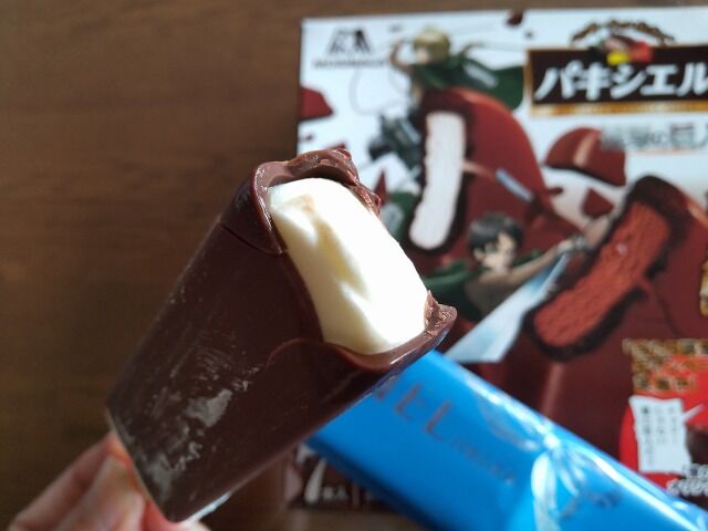 パキっと分厚いチョココーティングをしているアイスバーのパキシエル。
