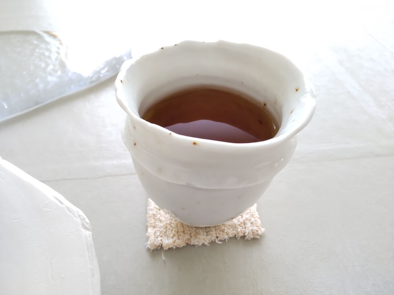 冷たいのも選べましたが、やっぱり熱いほうじ茶をお願いしました。