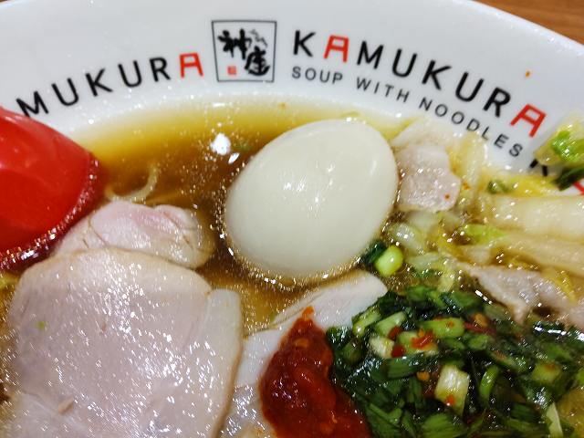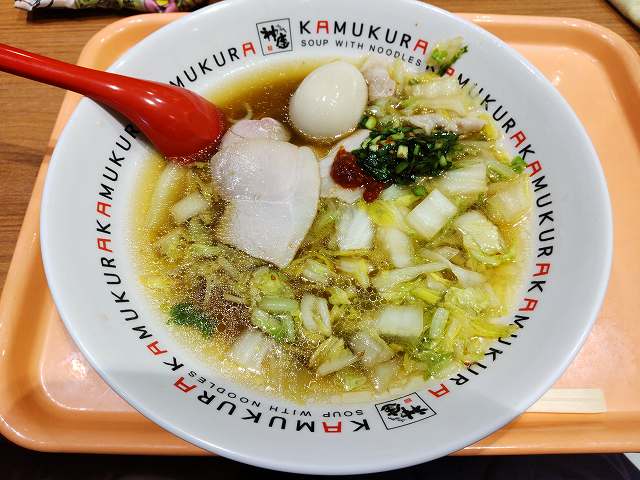 「どうとんぼり神座(かむくら)」の<おいしいラーメン>¥690に煮玉子¥120をトッピングしました。