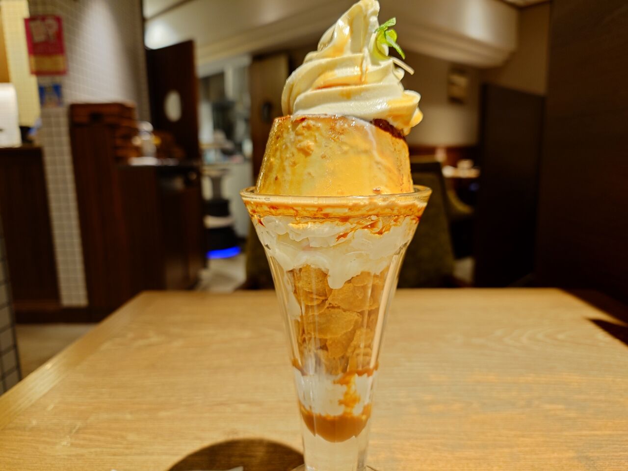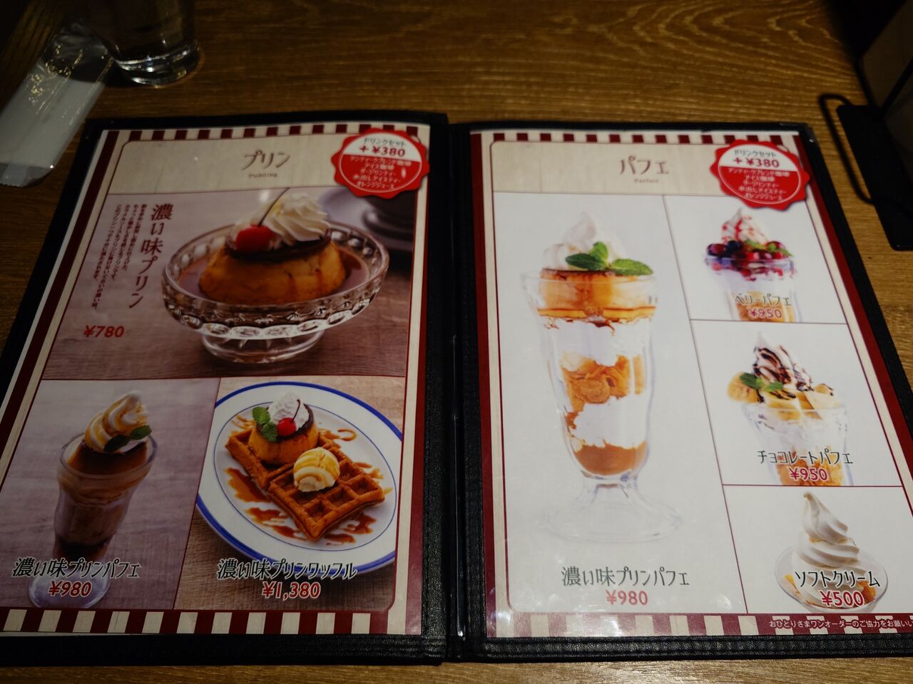 メニューのパフェの隣ページに写っているプリンがとてもおいしそうだったので、プリンのパフェにしました。