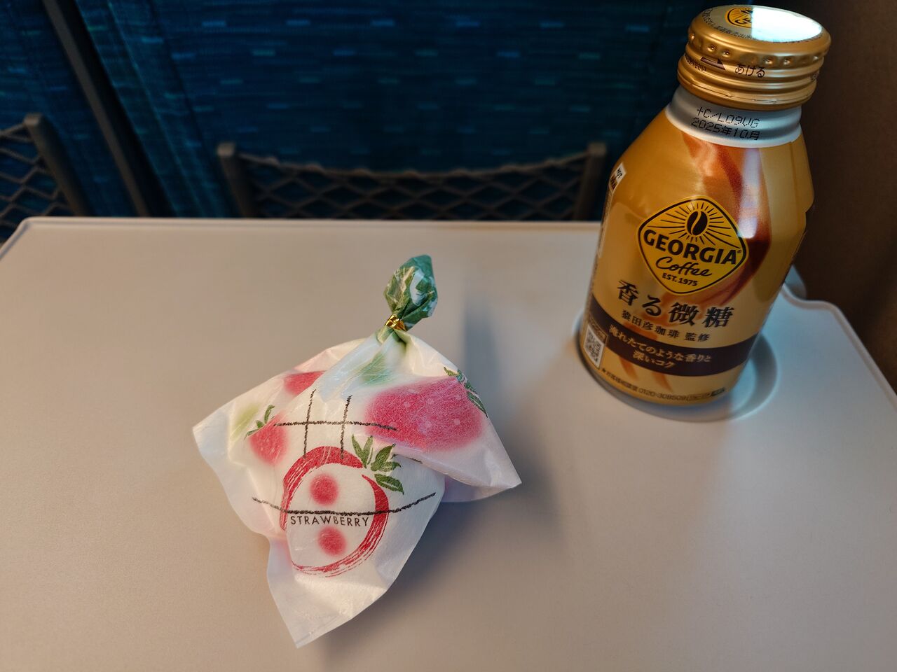 さてさて、本日の新幹線カフェは、玉華堂のいちご大福にしました。