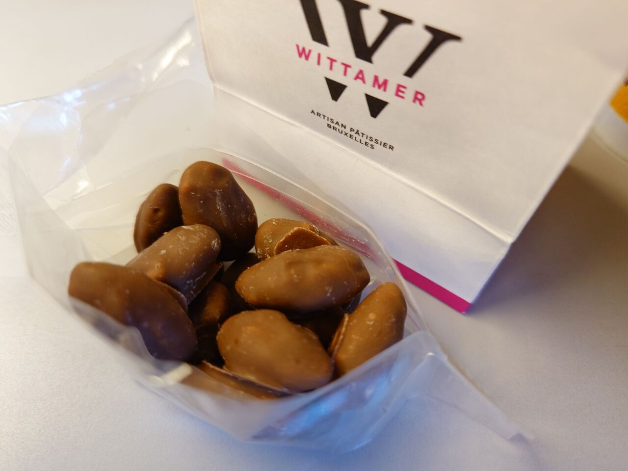 いわゆるアーモンドチョコですが、アーモンドの形がわかるくらいにチョココーティングされています。