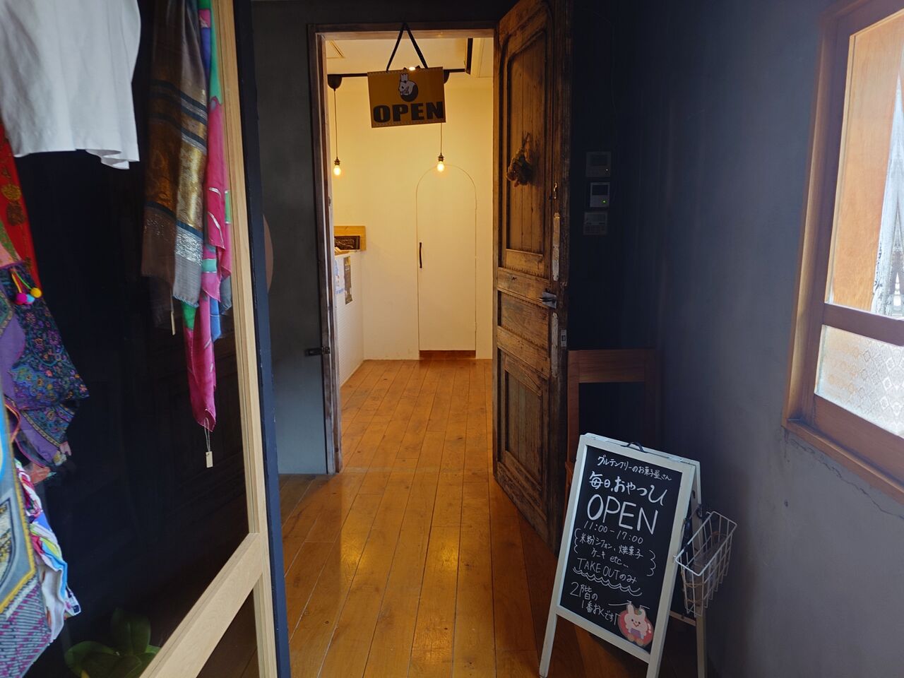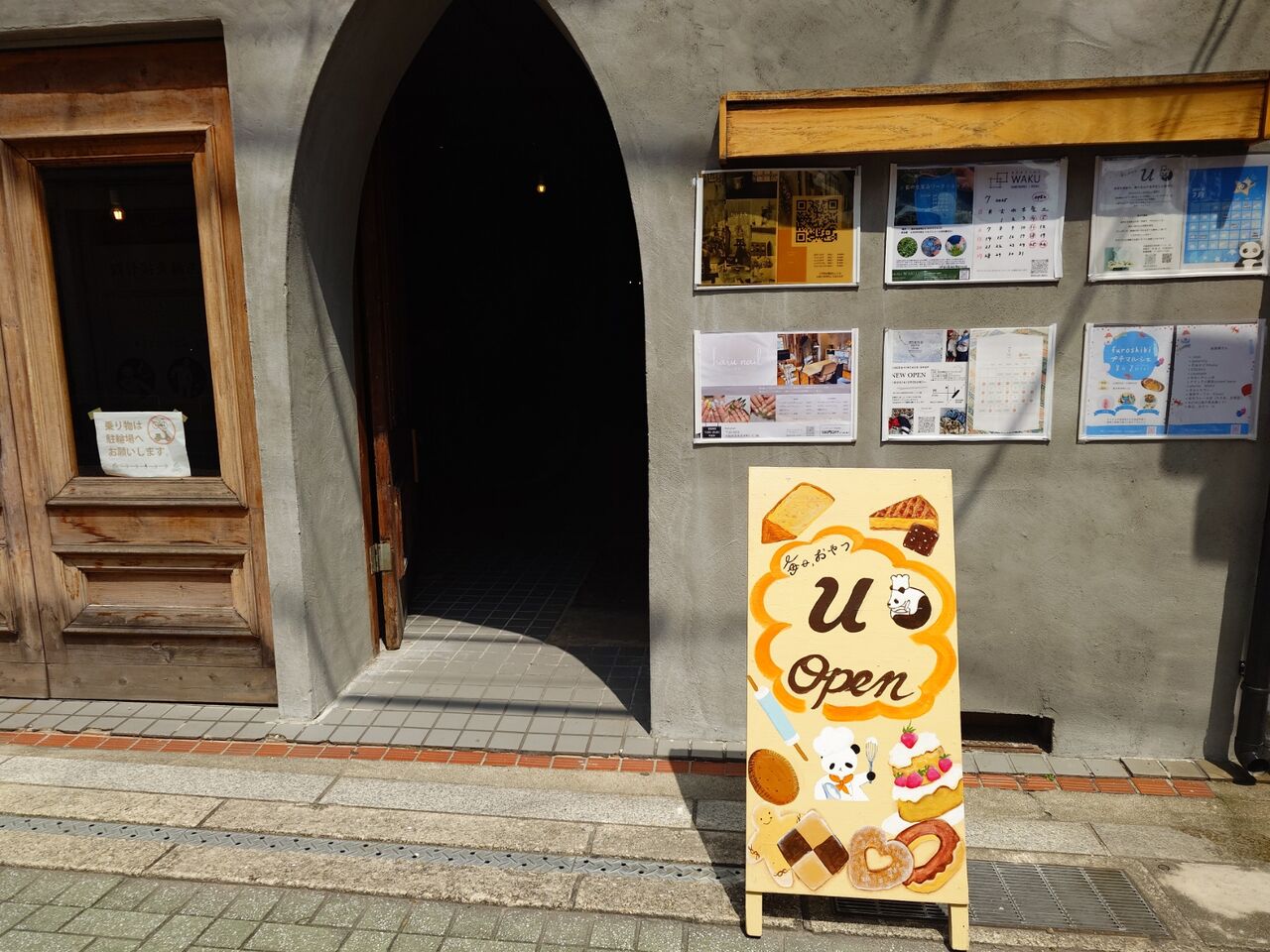 それが、「omo cafe +c」でランチをして帰ろうと歩いていたら、ツミキ食堂だった建物の前に「毎日、おやつ U」の看板がでていてびっくり。ここの2階のようです。