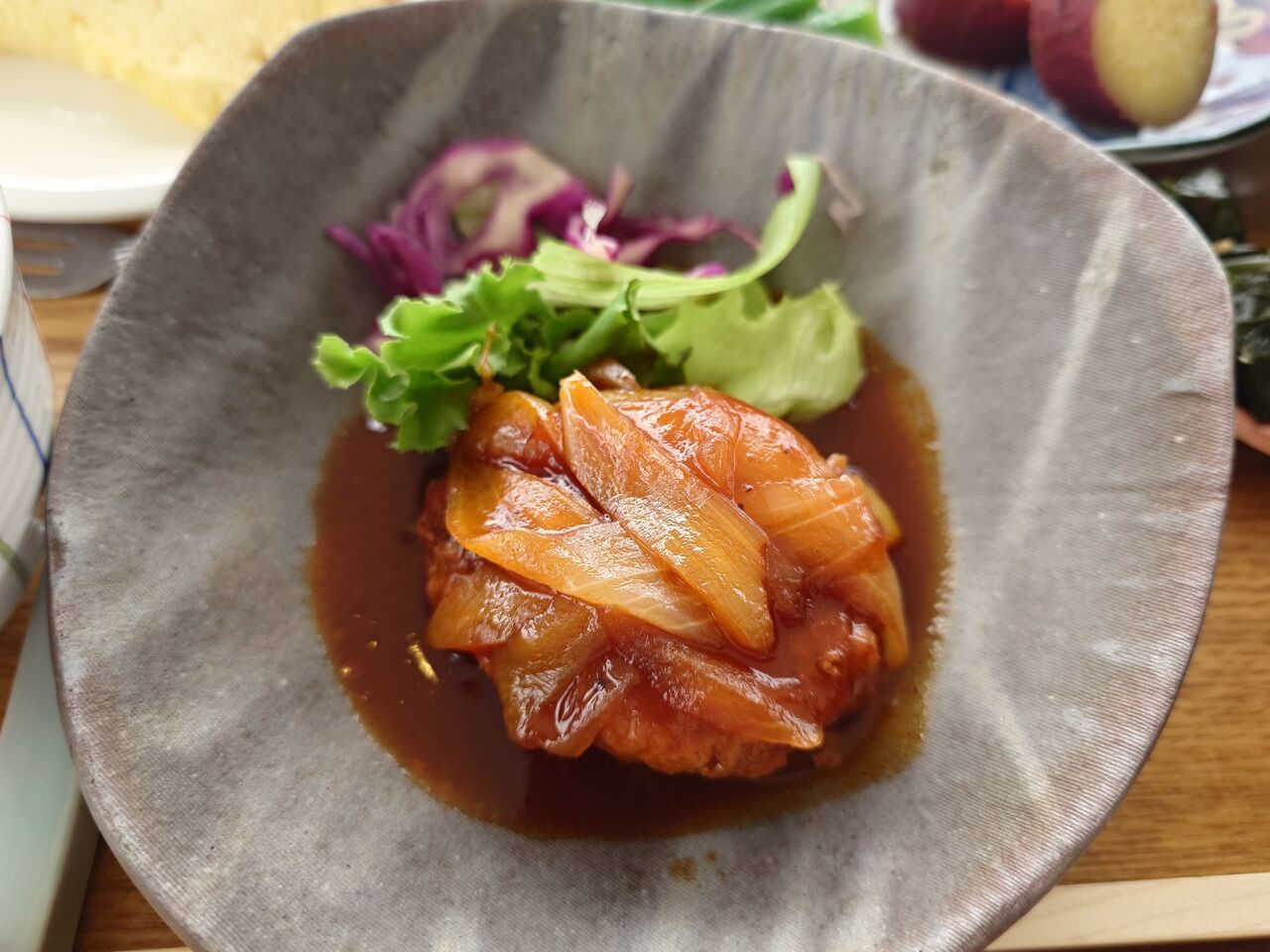 メインは、煮込みハンバーグ。