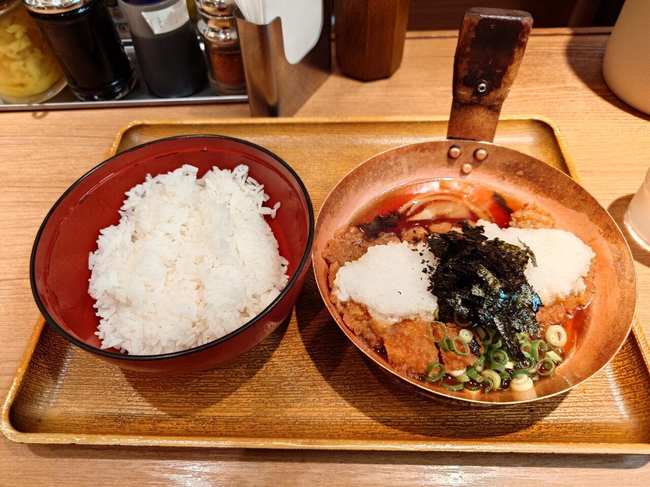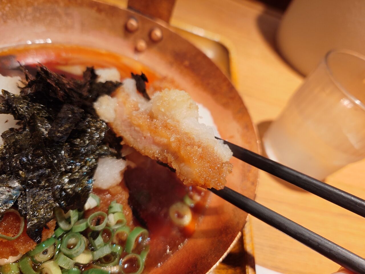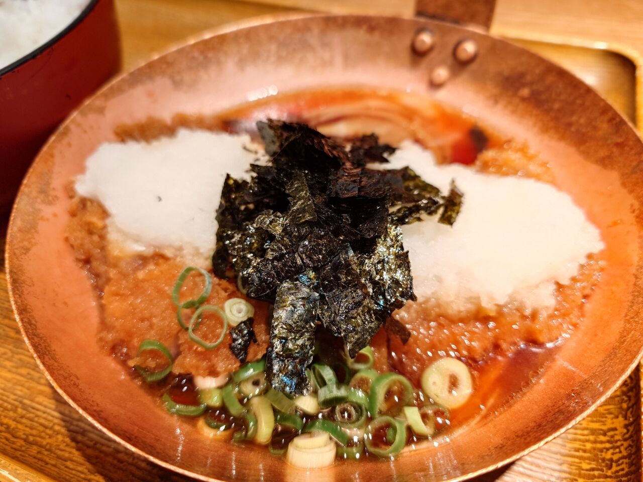 卵でとじるかわりに、たっぷりの大根おろしと味付け海苔がのっています。