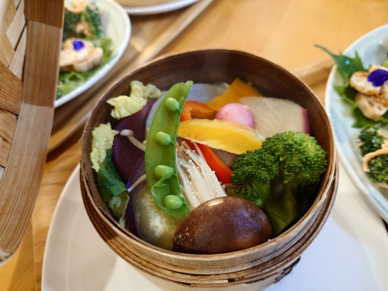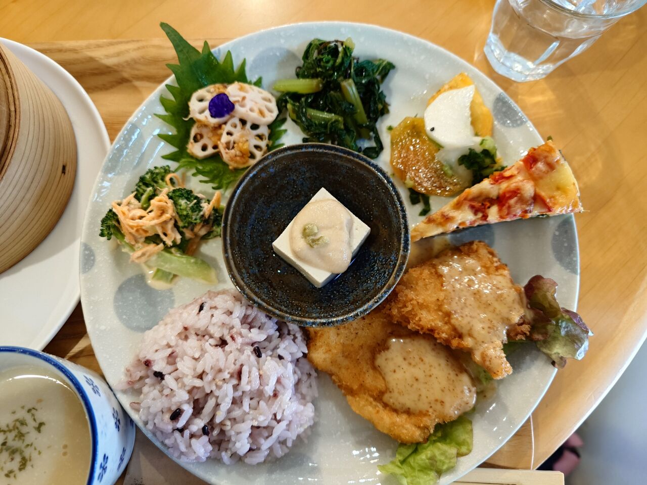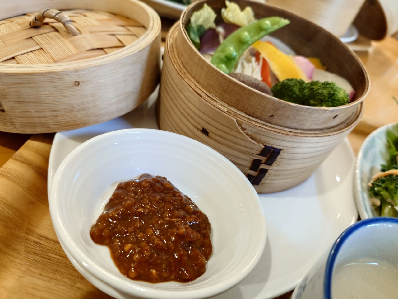 さて、せいろ蒸しの温野菜がついたランチプレートが来ました。