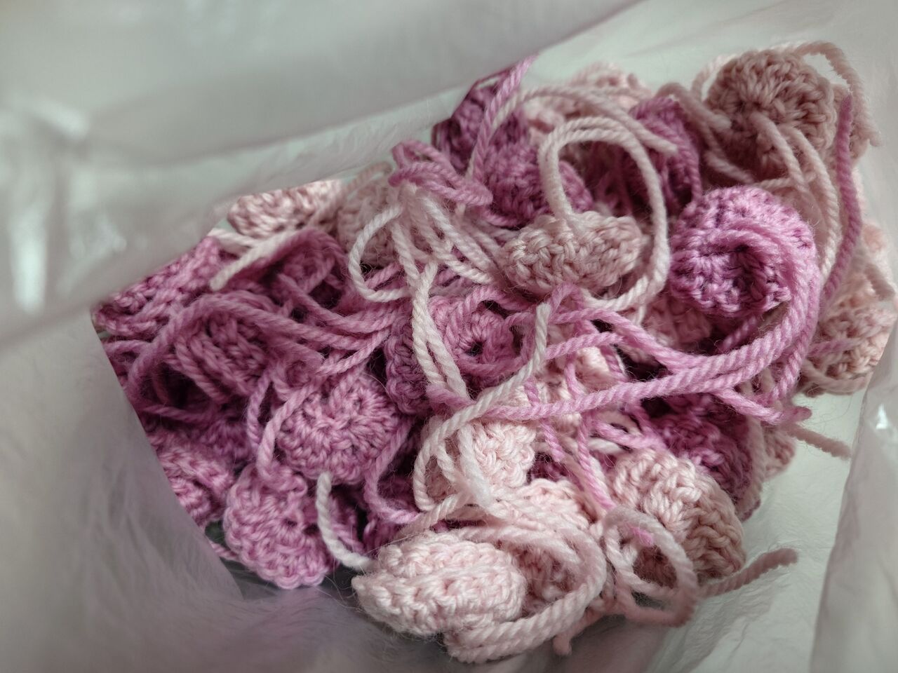 フーケブランケットは、スズランとバラの両方合わせて全部で6個編みました。