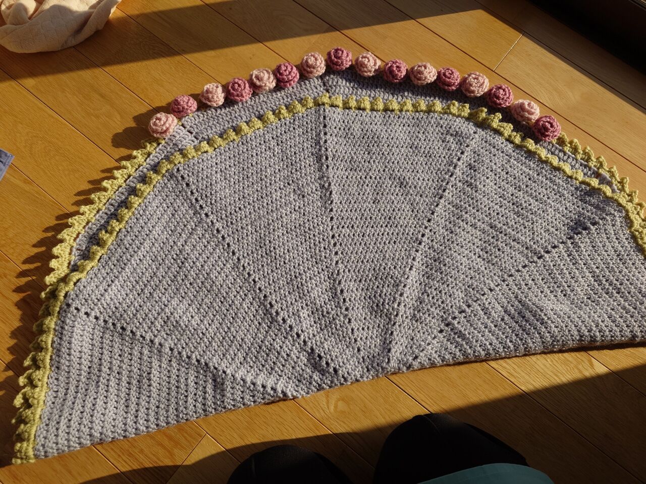 姉から欲しいと言われてほぼほぼ大阪で編んできたバラのブーケブランケット。