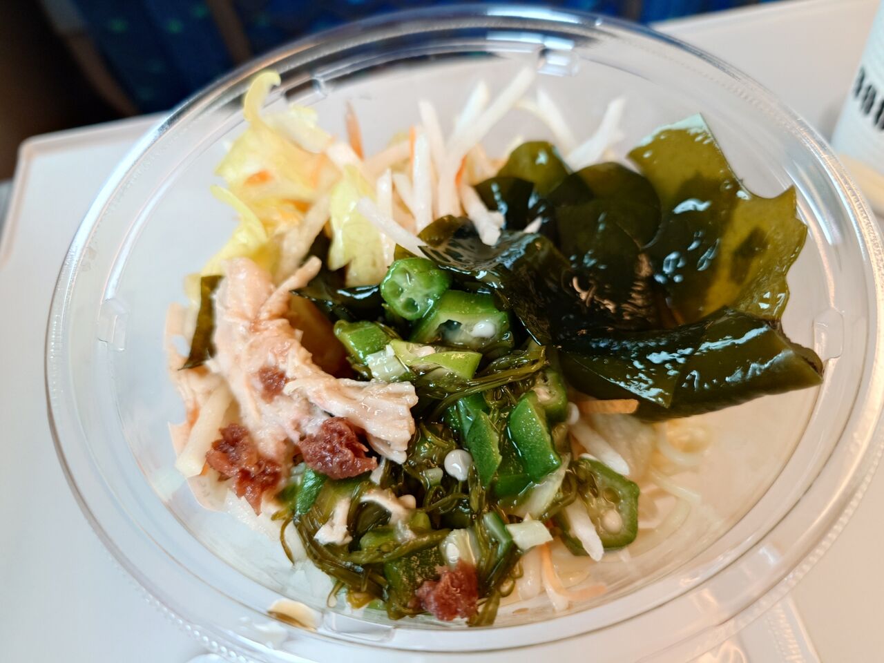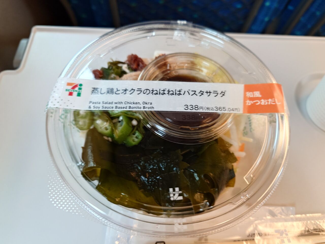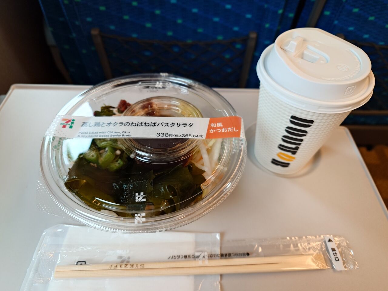 新幹線カフェは、うーん、セブンのパスタサラダか、ラーメンサラダにしよう!