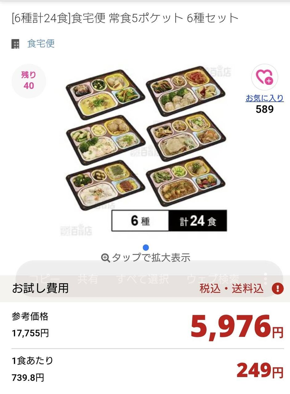 6種24食¥17755のところ¥5976で、1食あたり¥249です。