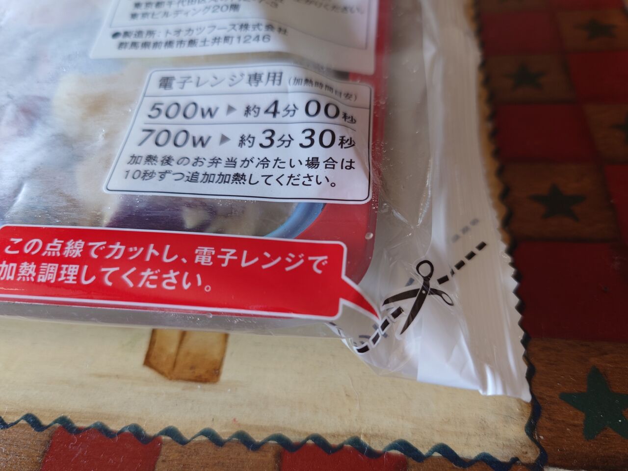 この角をちょこっとカットしてレンチンします。