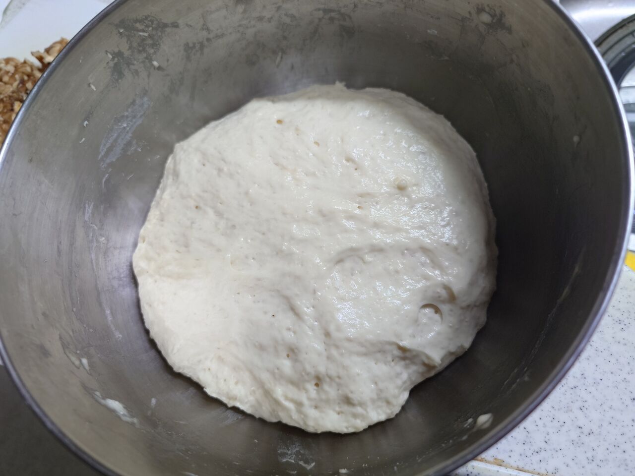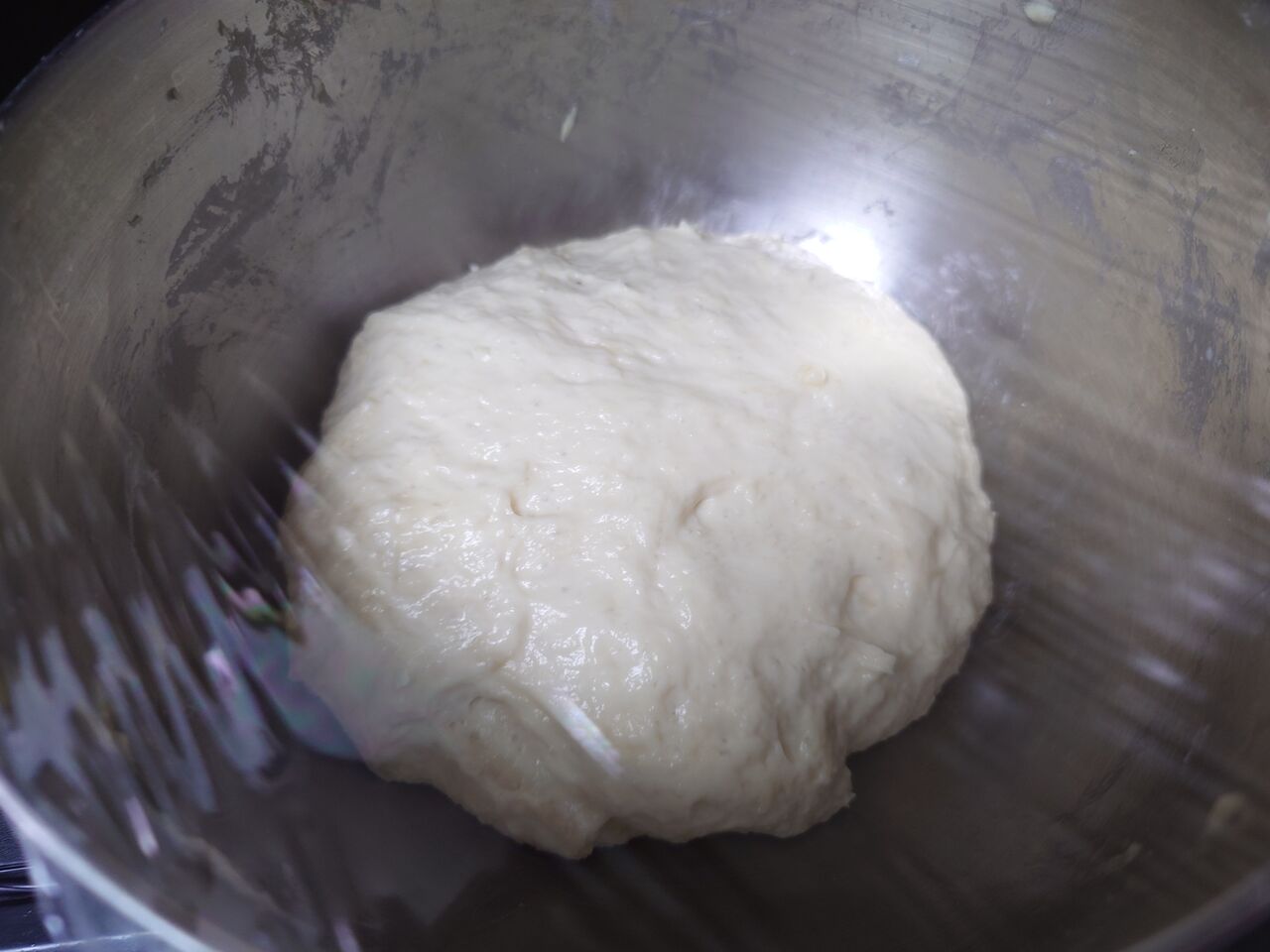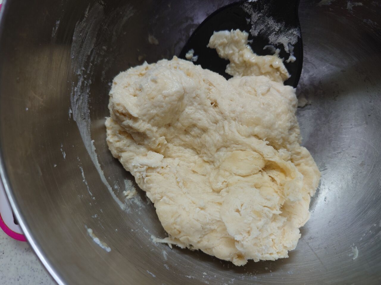 ③いつもより少し硬めの生地ですが、ボソボソ感がなくなるまで3分くらい練る
