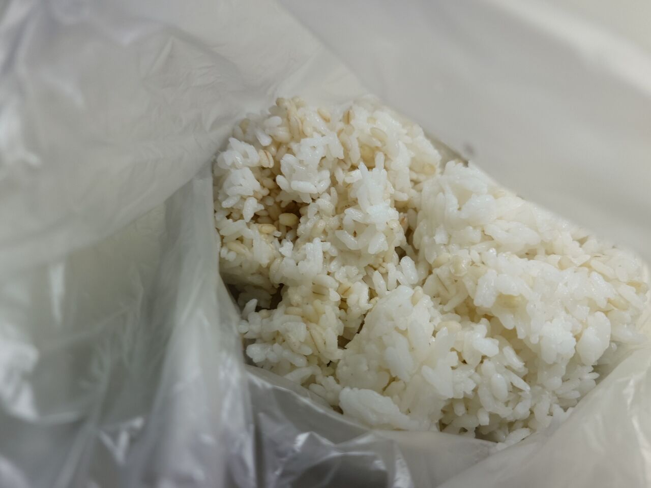 昨日の残りご飯をアイラップに入れて温めました。(もち麦入りです)