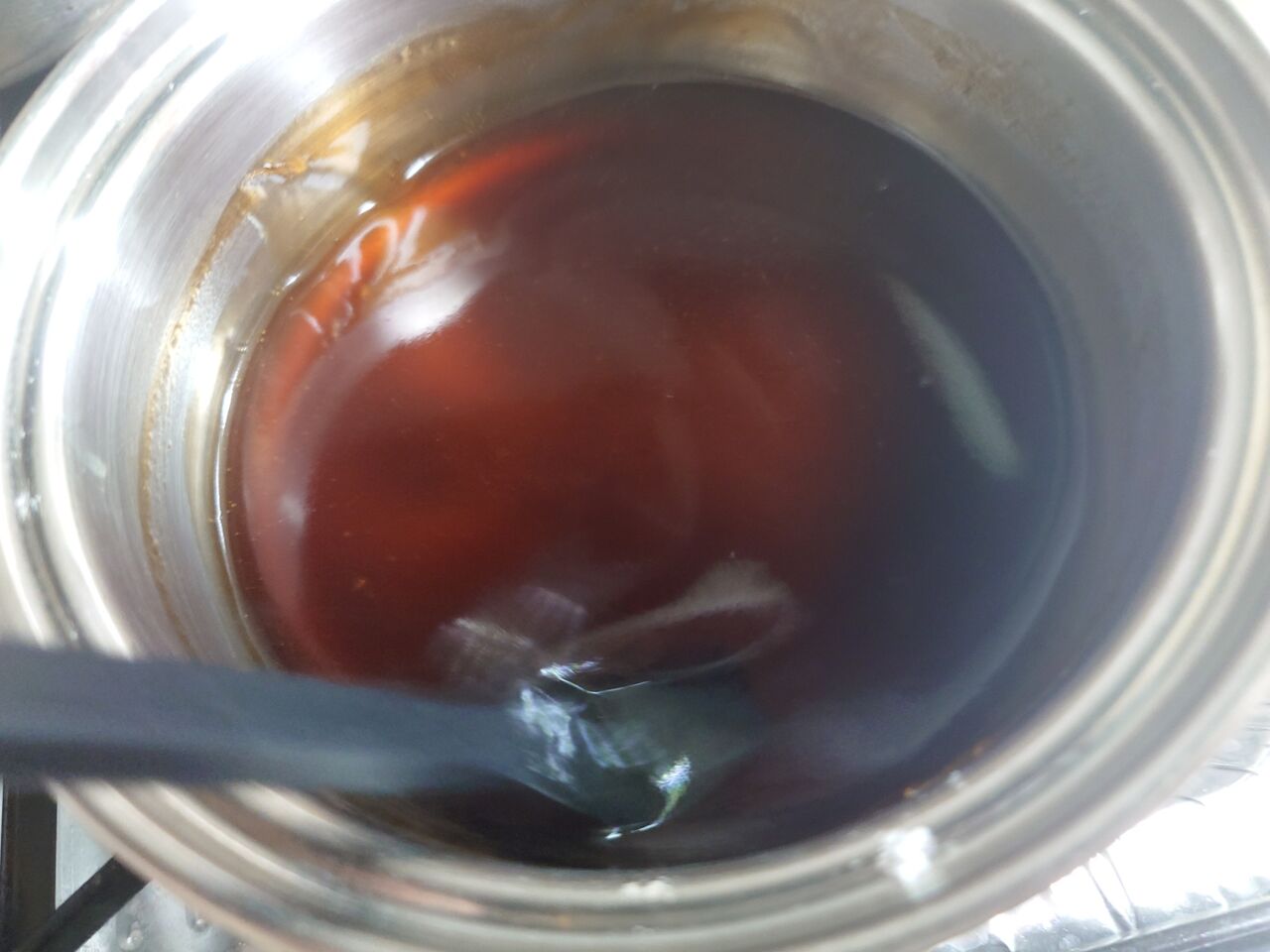 みたらしのタレは、材料をすべて鍋に入れ、よく混ぜてから火にかけます