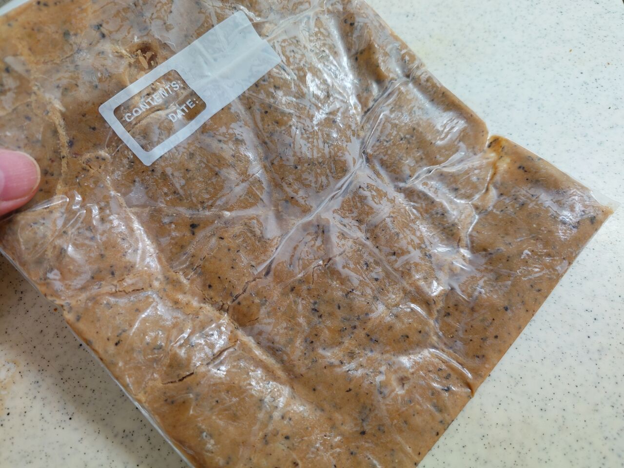 ぺったんこにして2〜3時間冷凍します。