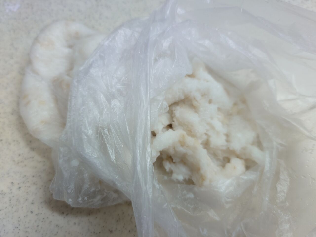 白玉粉で作ったものより、この段階でもちもちして固くてちぎりにくいので、