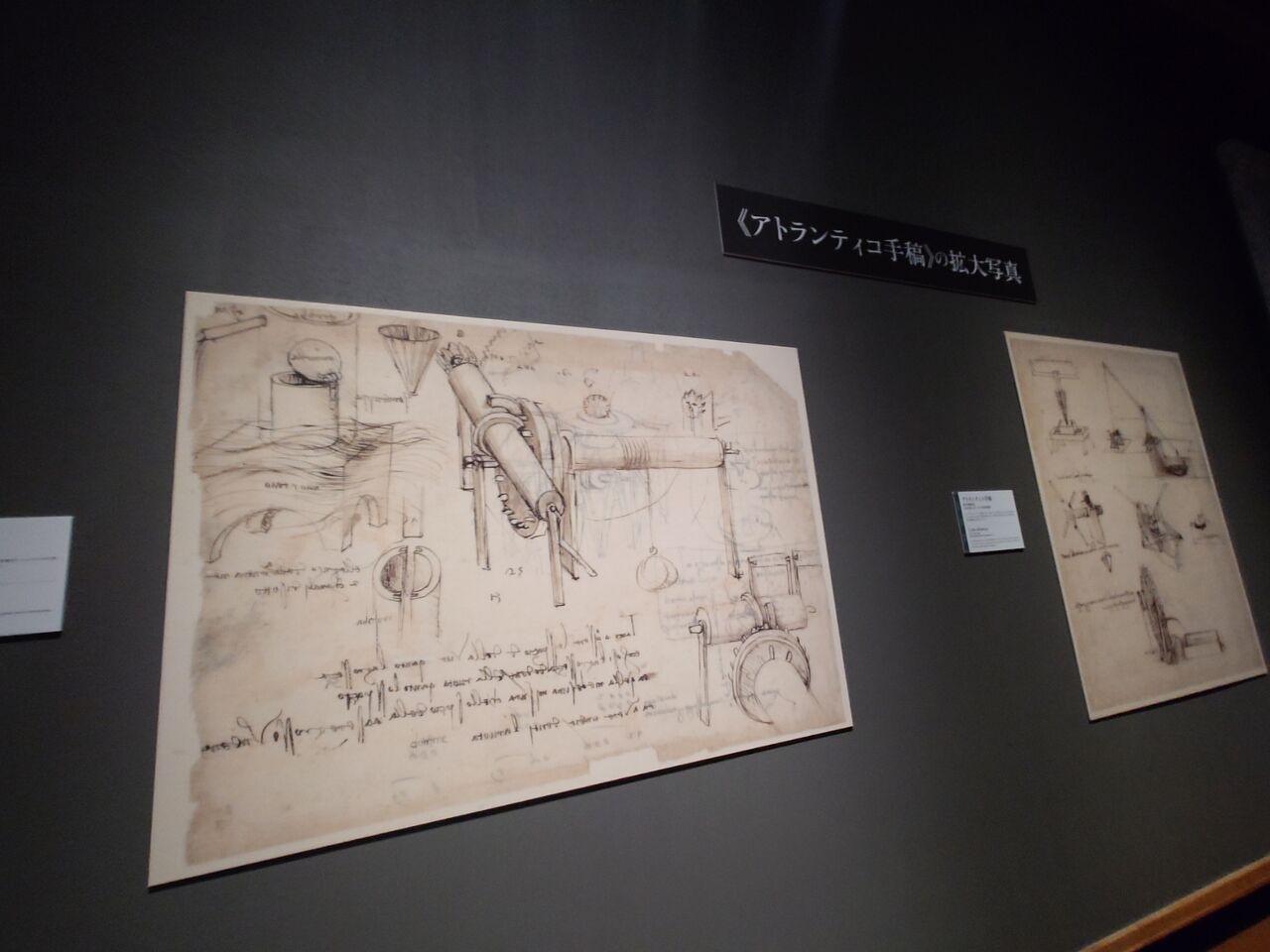 レオナルドダ・ビンチの〈アトランティコ手稿〉を 拡大したものと、