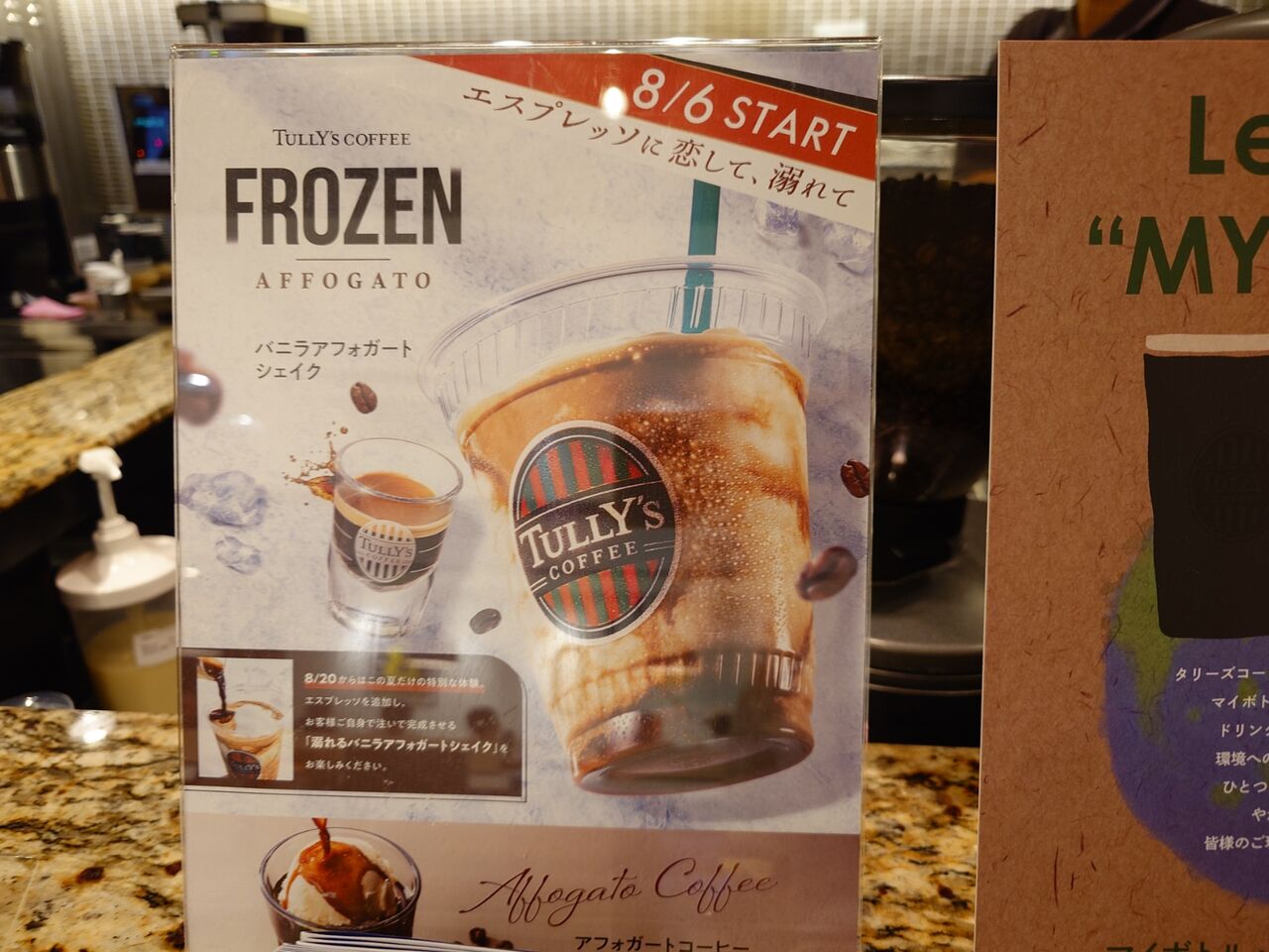 発売されてすぐのHPでは、店内提供の場合、自分でバニラフローズンにエスプレッソを注ぎ、テイクアウトの場合は、エスプレッソをスタッフが注いでからの提供になるって書いてあったので、自分でいれるのをちょっと楽しみにしていました。