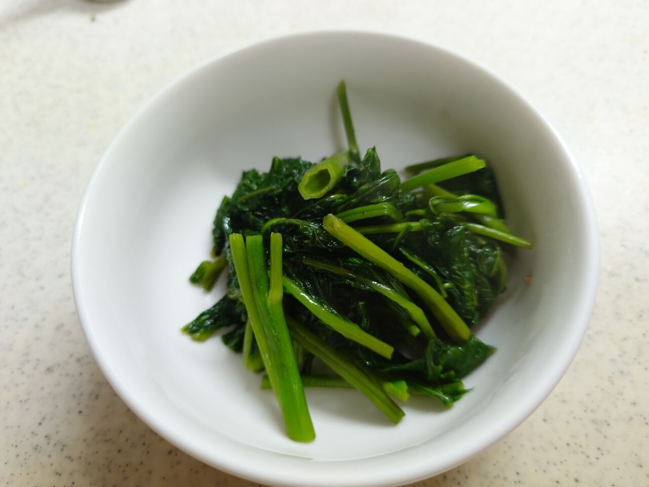 ニンニク(無かったのでチューブ)でさっと炒めたら、シャキシャキの食感がおいしい空芯菜炒めのできあがりです。