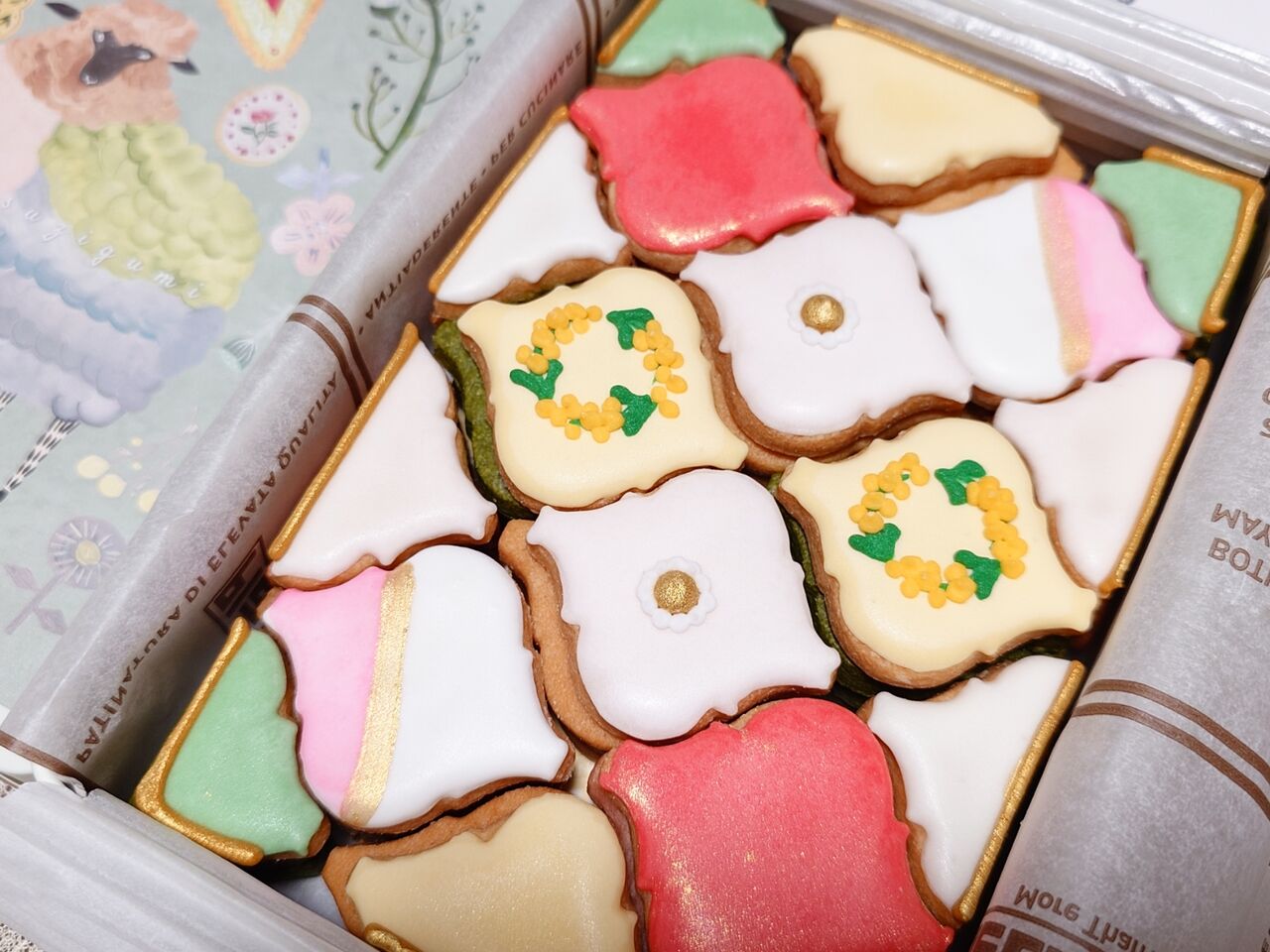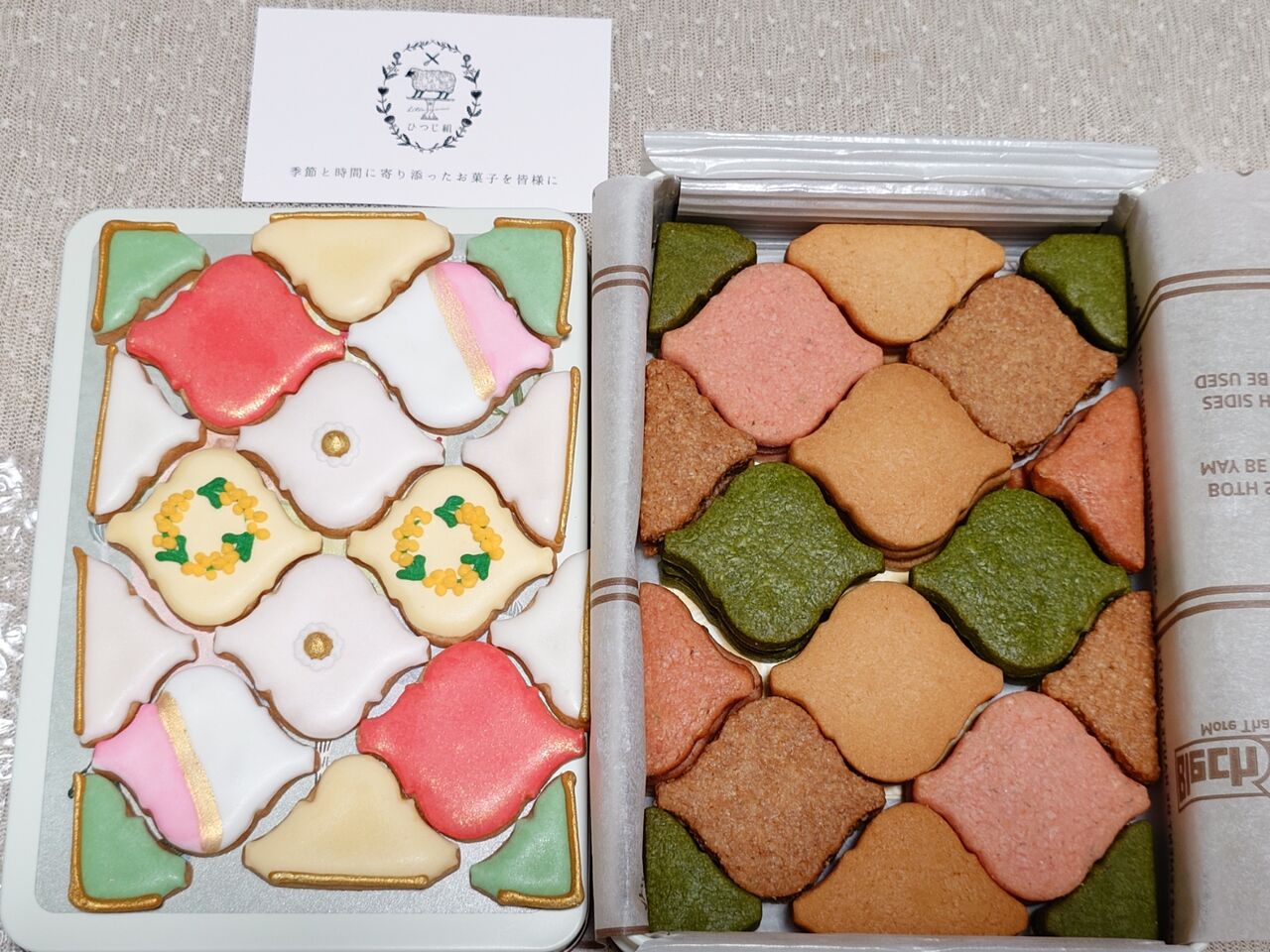 蓋を開けると、ヨーロッパの綺麗なタイルのようなクッキーがぎっしり入っていました。