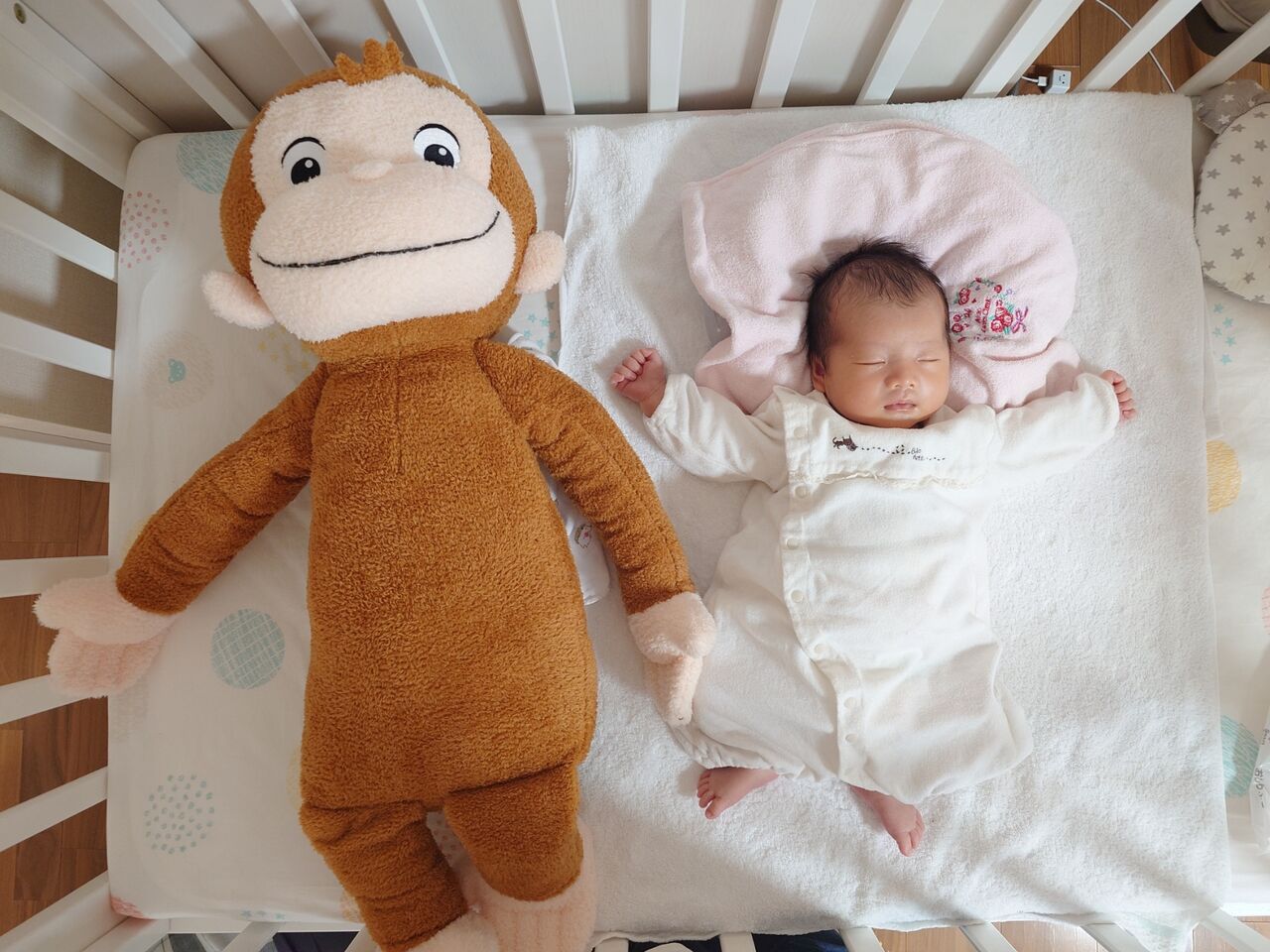 ジョージは、身長70cm(らしい)で、生後3週間のAoくんよりかなり大きい!