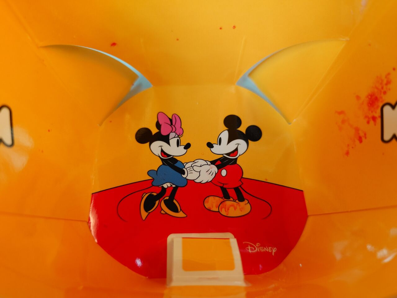 パッケージの底はミッキーとミニーのイラスト入り。小さい子がいたら、家でおやつの小分け用に使いたいくらいと思いました。