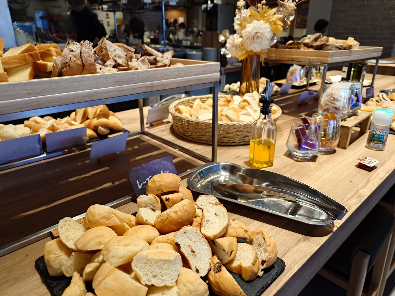 パンコーナーには、温めるためのオーブントースターもありましたし、ジャムやオリーブオイルも用意されていました。