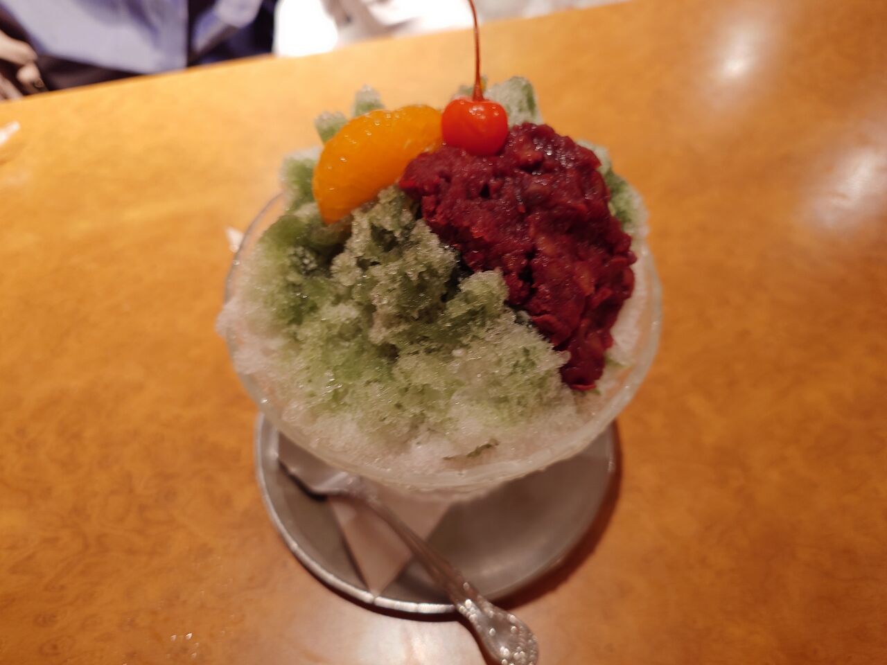 あんこがちょっと硬めで、氷も決して細かくはないのですが、こんな暑いときには汗がスーッと引いておいしかったです。