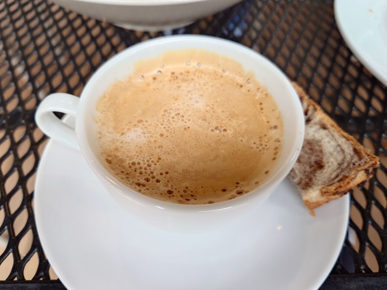 最後にカフェラテと、マーブルチョコのパンを一切れ持ってきました。