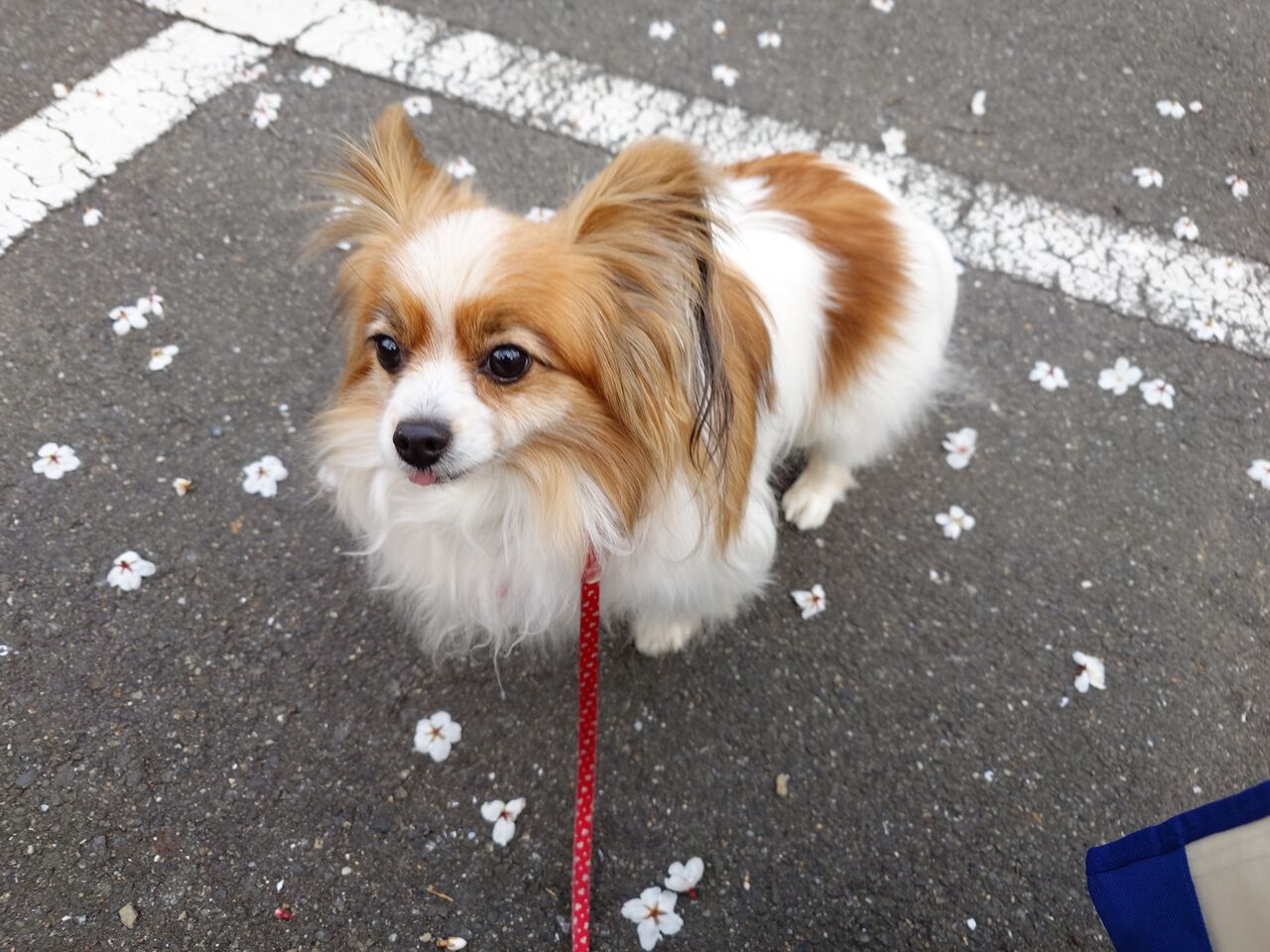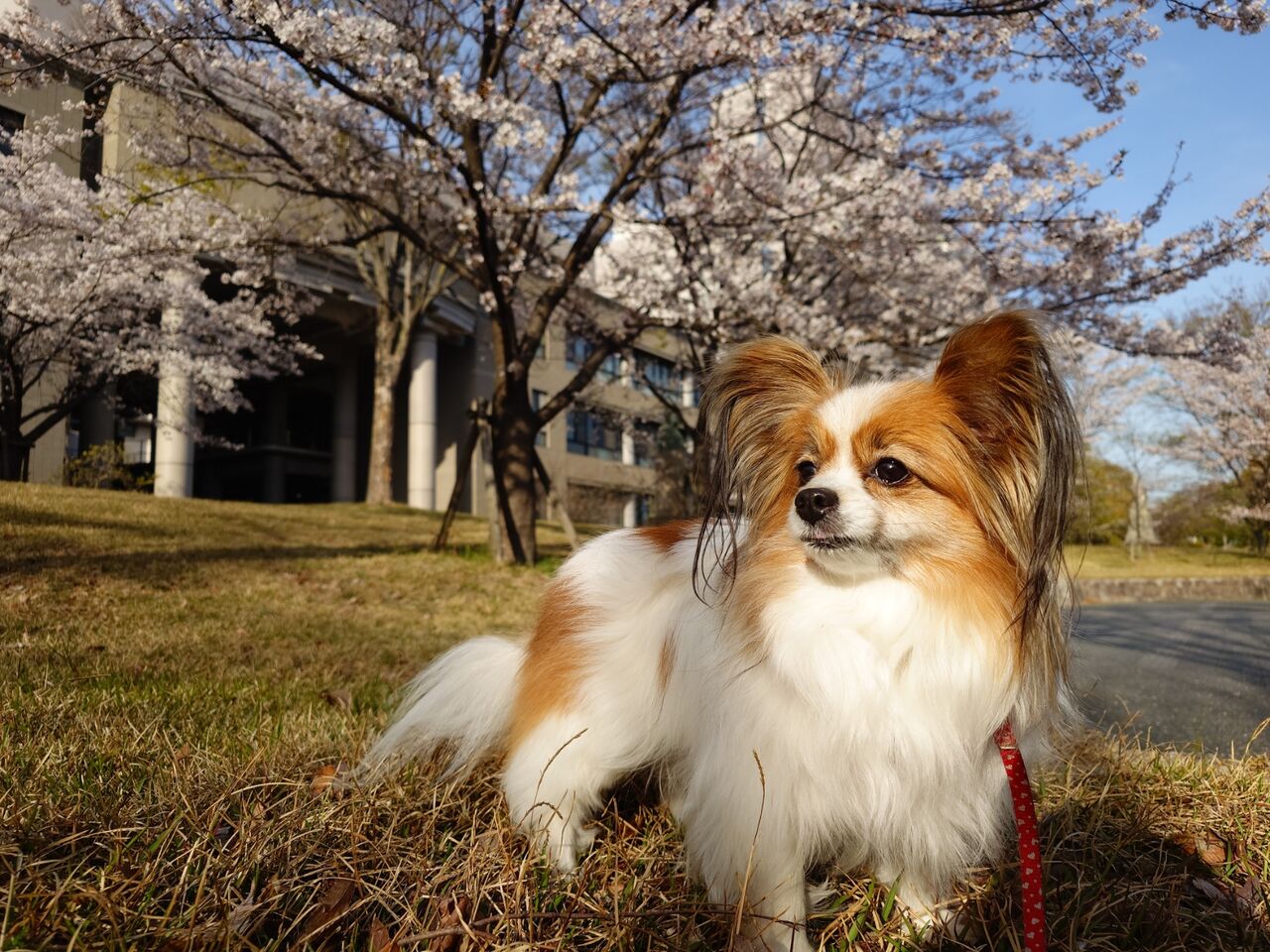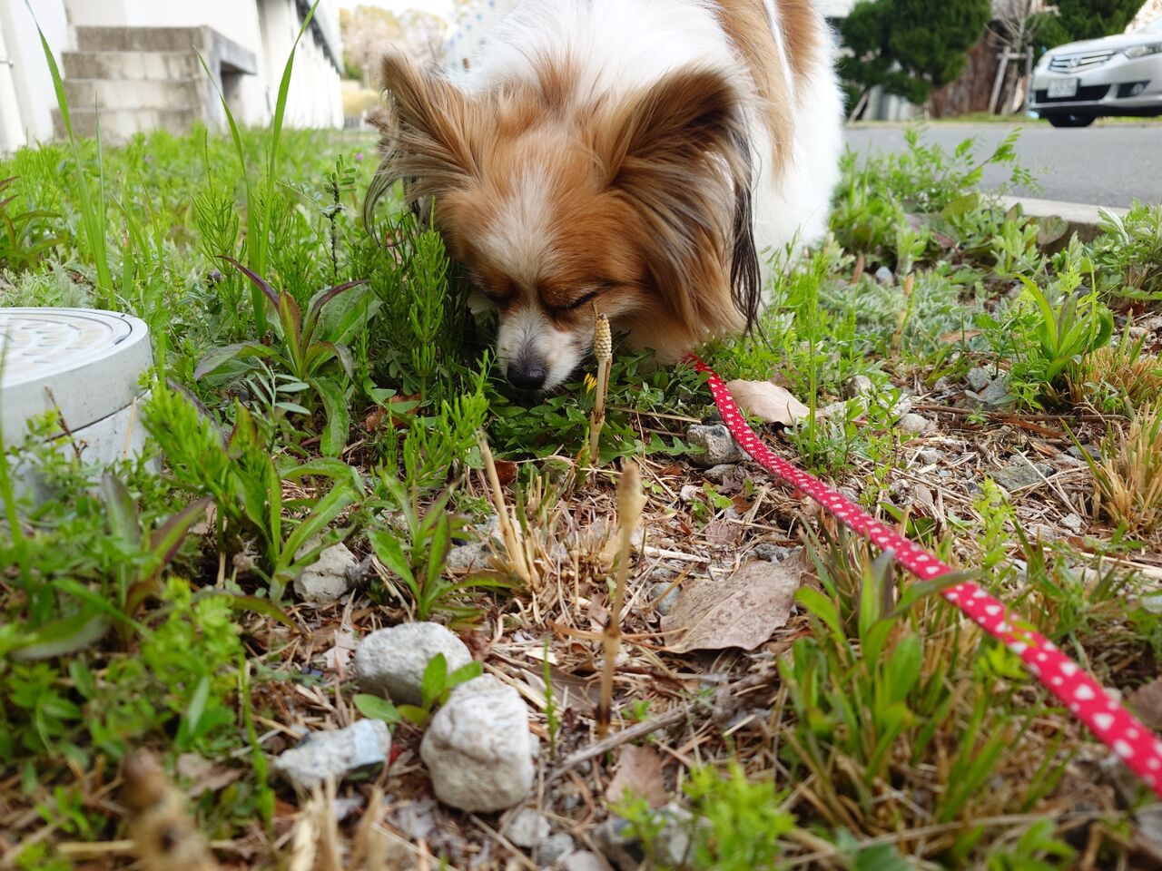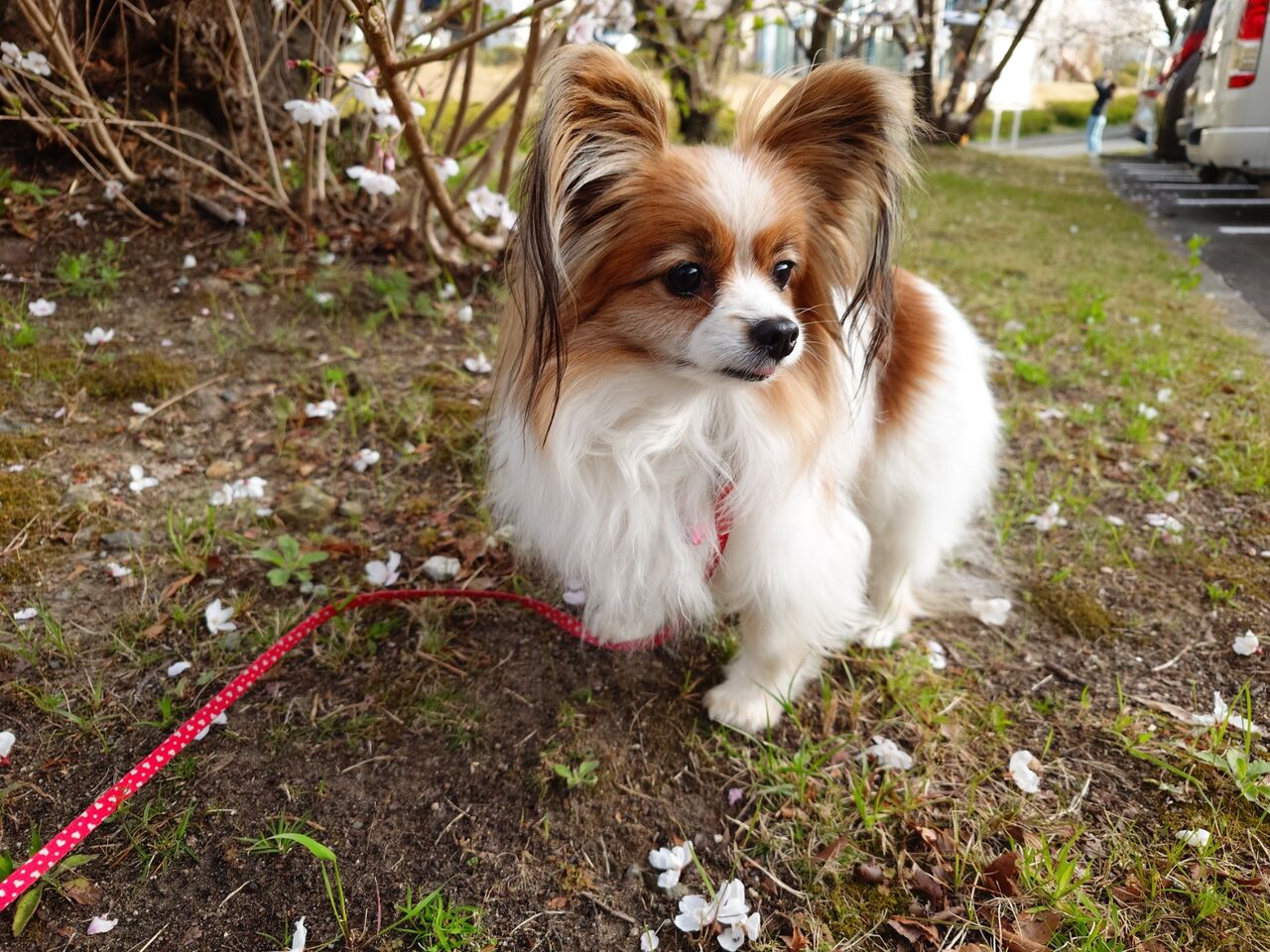 マンションの大規模修理の音に、みんが反応しすぎるので、お花見を兼ねてゆっくりお散歩に行ってきました。