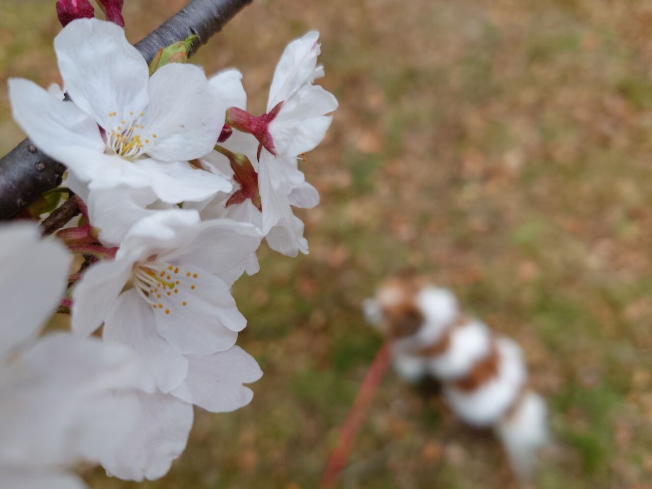 みんと一緒にお散歩に行くと、ソメイヨシノなどはまだですが、早咲きの桜が満開になっていました。