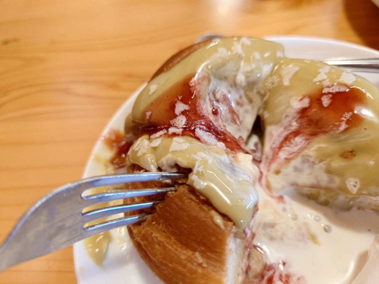 とけてくるので、ソフトクリームを横におろして、デニッシュ部分をいただきます。