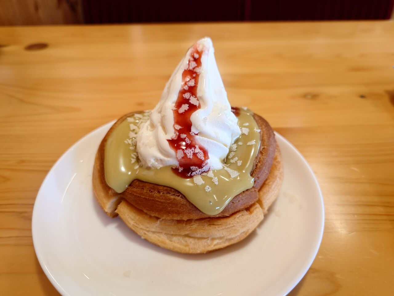 ただ、違和感はラズベリーソースだけでなく、ソフトクリームのかたちにもあったんでした。