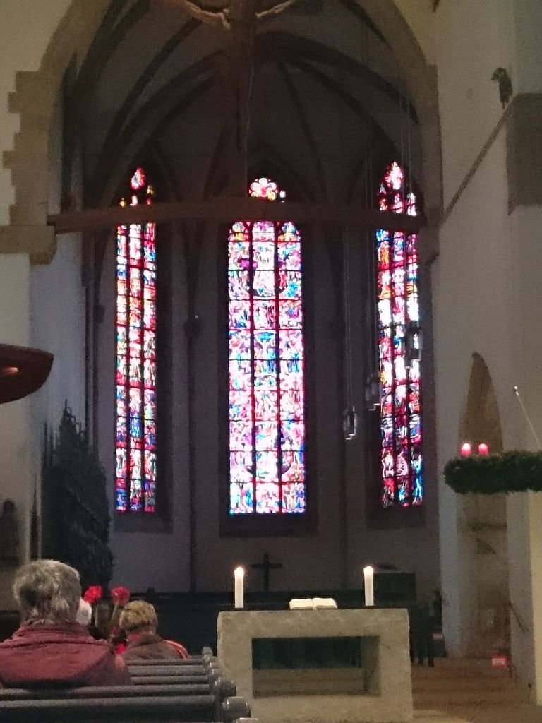 プロテスタント教会(写真)とカトリック教会が向かい合わせに建っています。