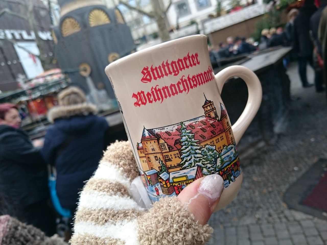 左から、ストラスブールのホットアップルジュースのプラスチック製、ルードヴィヒスブルクのカプチーノ、シュトゥットガルトのオレンジのホットリキュールのカップです