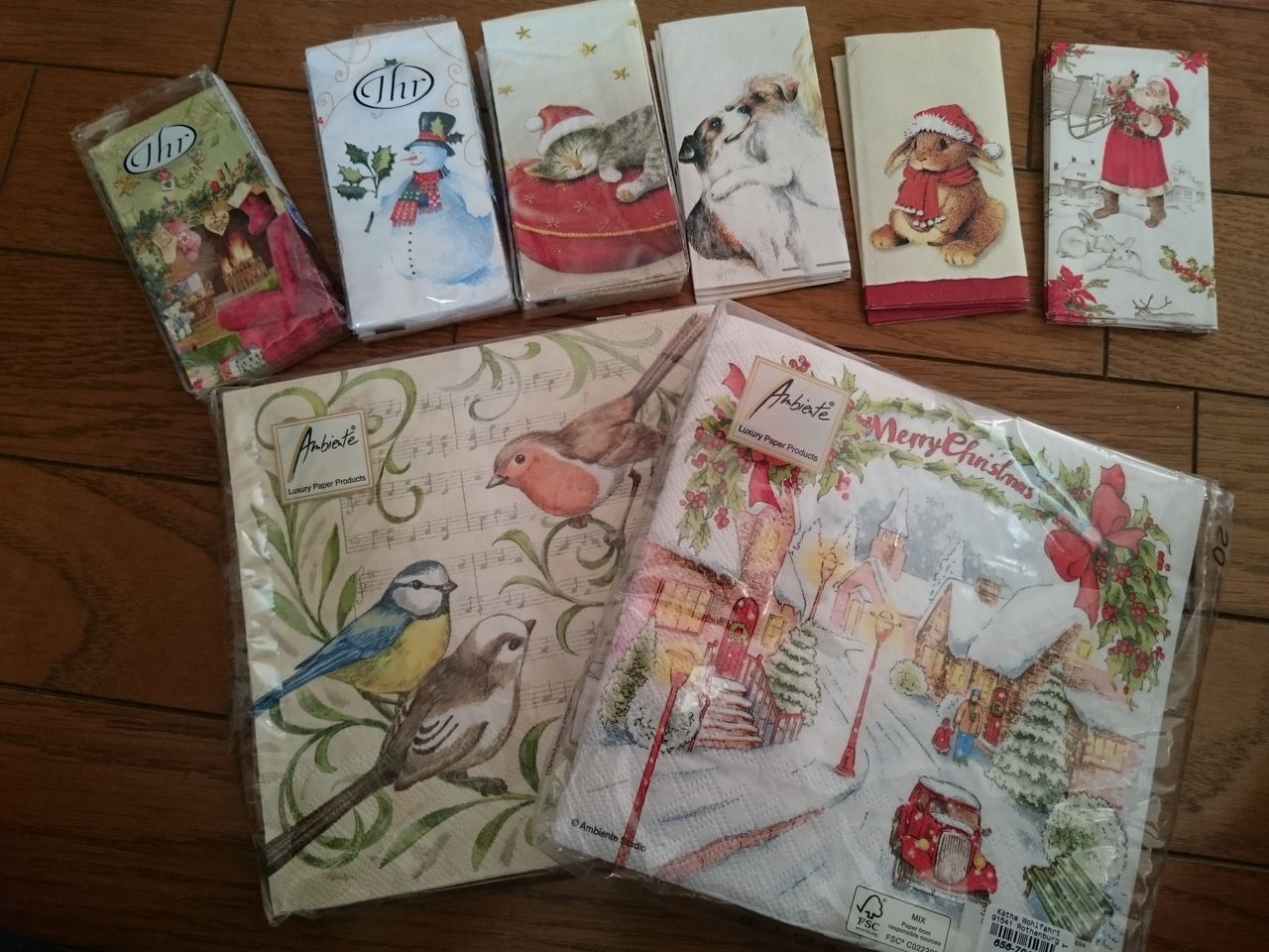 クリスマス柄のかわいいペーパーナプキンがいっぱい~。あれこれ選んでいたら時間がなくなります・・・。